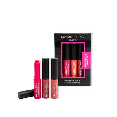 Cuida tus labios con estilo con el Set Triple Bálsamo Butter Balm Colorful de Magic Studio. Un pack encantador que combina nutrición, color suave y una presentación perfecta para regalar o llevar siempre contigo.