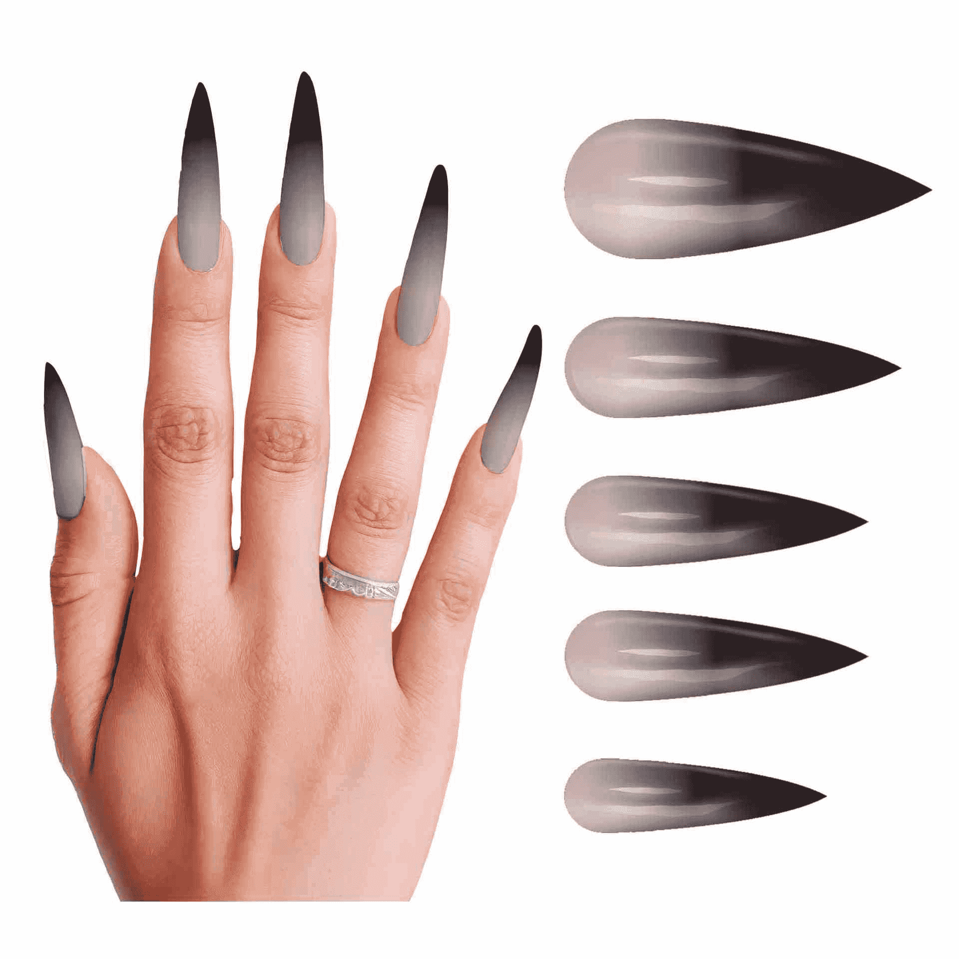 - Incluye 12 uñas postizas de estilo gótico.