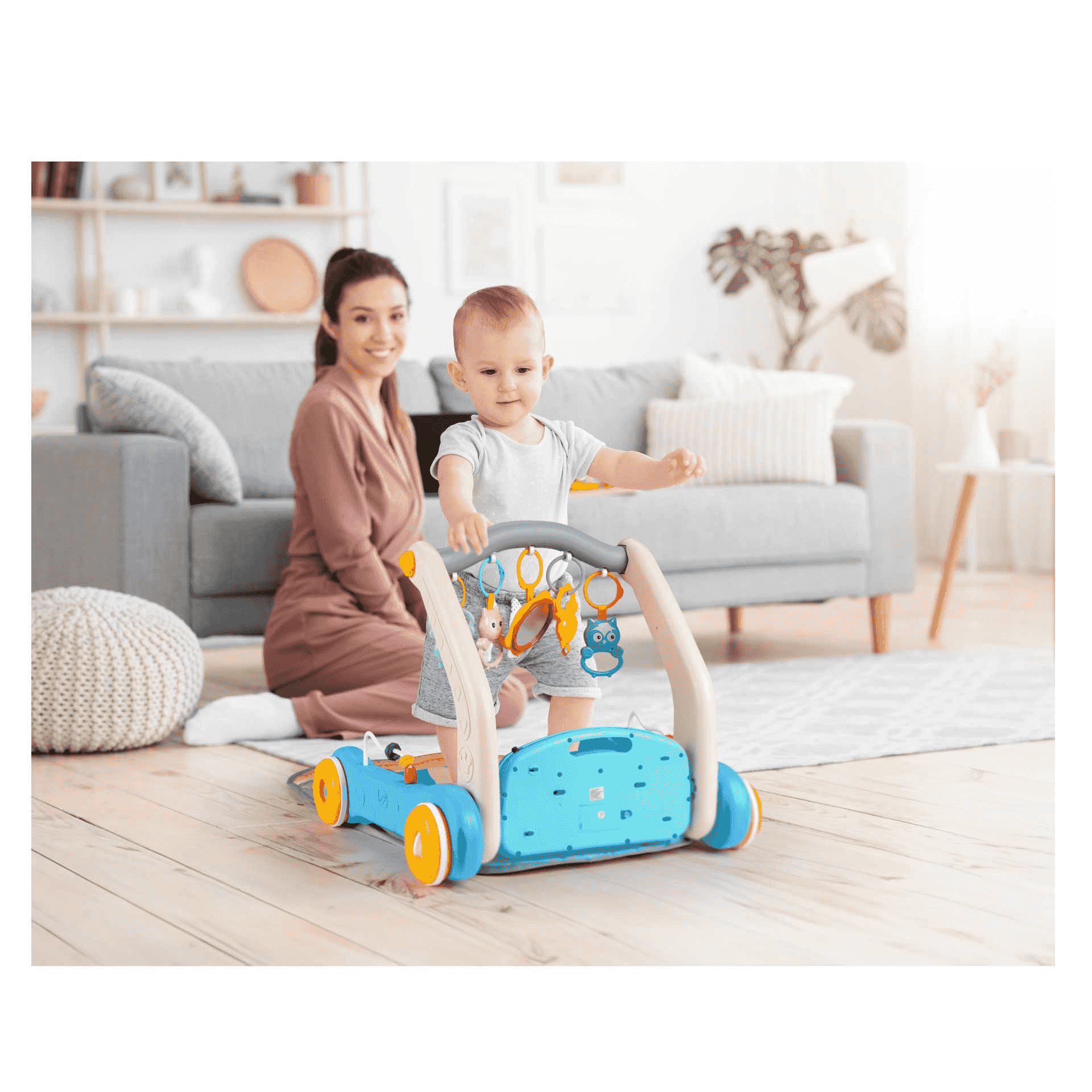 - - Andador con ruedas para que los bebés puedan moverse con facilidad.