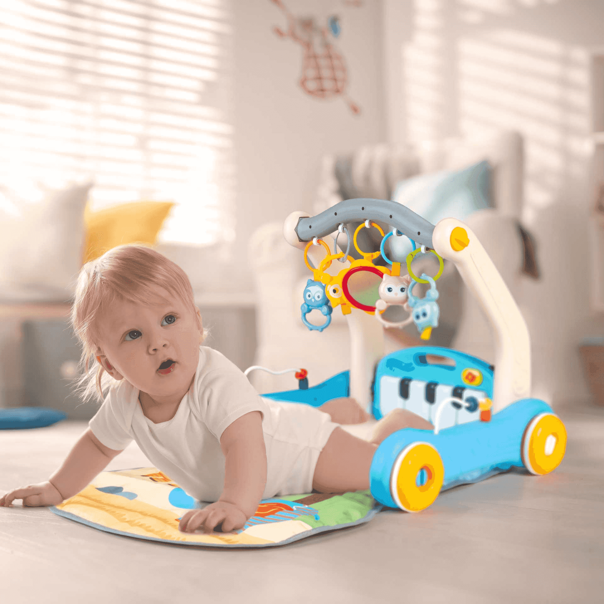 Este 2 en 1 Andador y Mantita Musical ayuda a los niños en su desarrollo motor y sensorial. Les permite explorar el mundo que les rodea de forma segura y divertida, al mismo tiempo que estimula su curiosidad y creatividad.