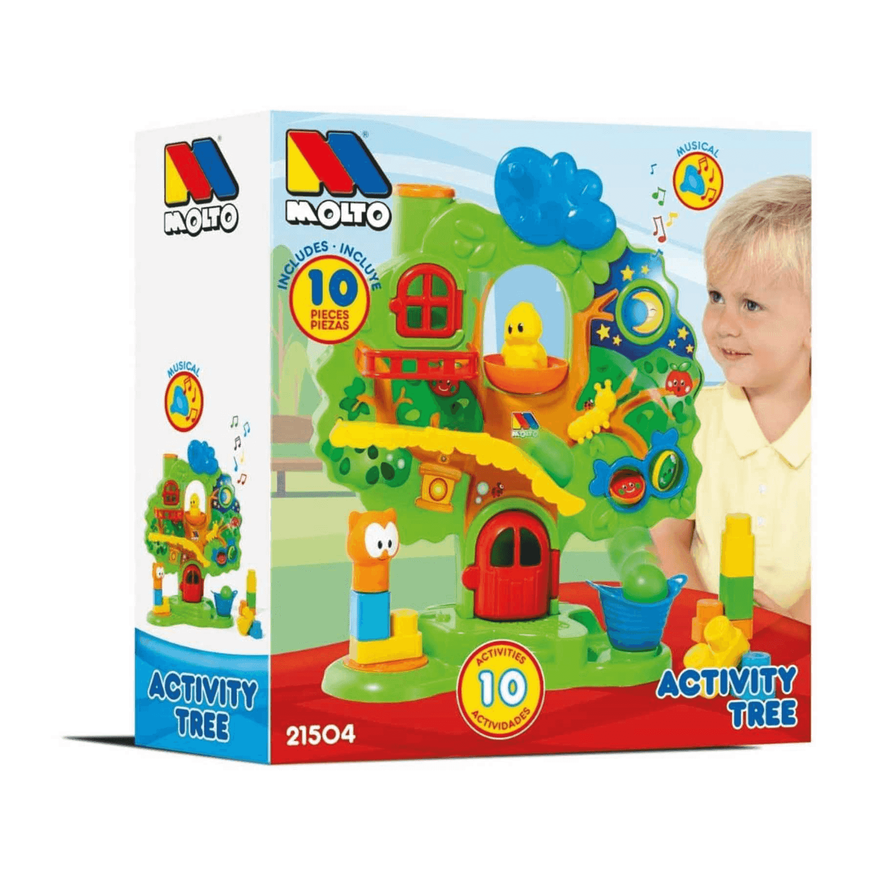 Con el Arbol de 10 actividad + 10 Molto Blocks los más pequeños de la casa podrán divertirse de forma segura mientras aprenden. Los juguetes educativos son la mejor manera de desarrollar múltiples habilidades motrices y cognitivas cuando los niños son pequeños. Este árbol de múltiples actividades permite una interacción libre. Incluye diferentes accesorios para completar una experiencia divertida y atractiva. También, cuenta con distintos sonidos que acompañarán los juegos de tus niños y niñas. Incluye más instrumentos con los que se podrá jugar y escuchar los sonidos emitidos por el juguete principal.