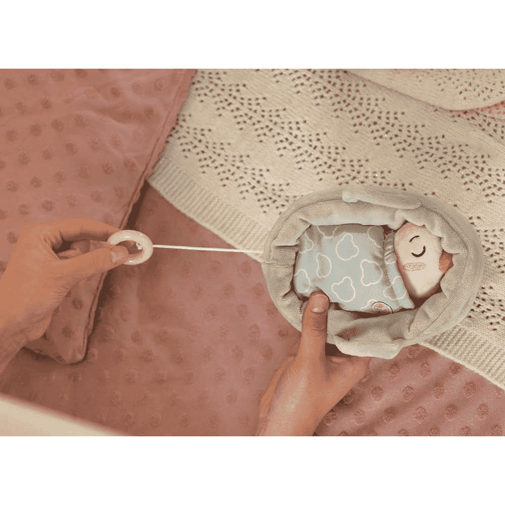 Al tirar del aro, Berta reproduce una suave melodía que ayuda a crear un ambiente relajante, ideal para acompañar a los más pequeños antes de dormir o durante sus momentos de calma.
