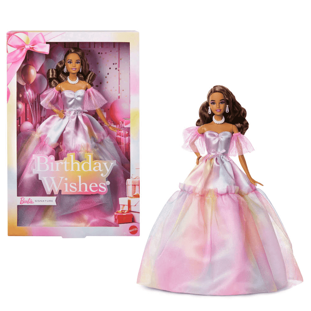 ¡Celebra un día inolvidable con la muñeca Barbie Feliz Cumpleaños! Diseñada para hacer que cualquier celebración sea aún más especial, esta muñeca luce un precioso vestido festivo perfecto para soplar las velas y vivir momentos mágicos.