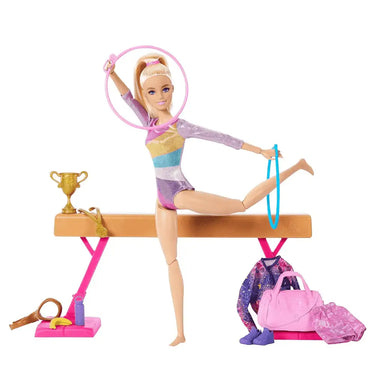 - Los peques darán volteretas de alegría imaginando su carrera como gimnastas con la muñeca Barbie y su barra de equilibrio. El conjunto de juego incluye más de 10 piezas temáticas para inspirar historias llenas de victorias.