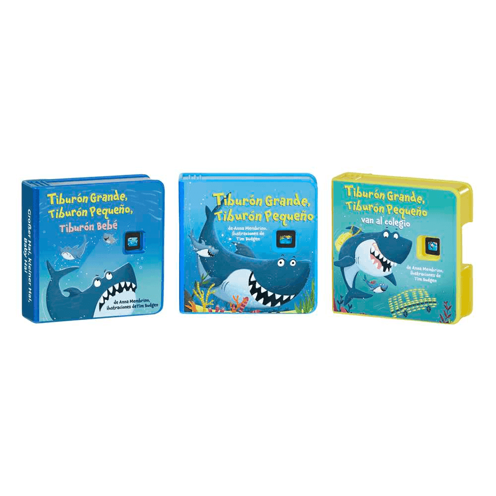 El set incluye además una figura de tiburón que se coloca en la parte superior del dispositivo. Al hacerlo, se activan efectos especiales de luz y sonido que hacen que la experiencia del cuento sea aún más divertida.