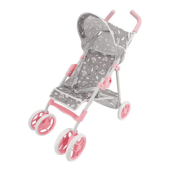 Se trata de una silla de paseo de juguete tipo carro plegable con estampado de nubes y tonos suaves. Incluye una capota abatible para proteger al muñeco durante el paseo, ruedas dobles delanteras giratorias para una mejor estabilidad, y un asiento de tela resistente y lavable. Su estructura se pliega fácilmente, ocupando poco espacio de almacenamiento. El producto no incluye muñecos ni accesorios.