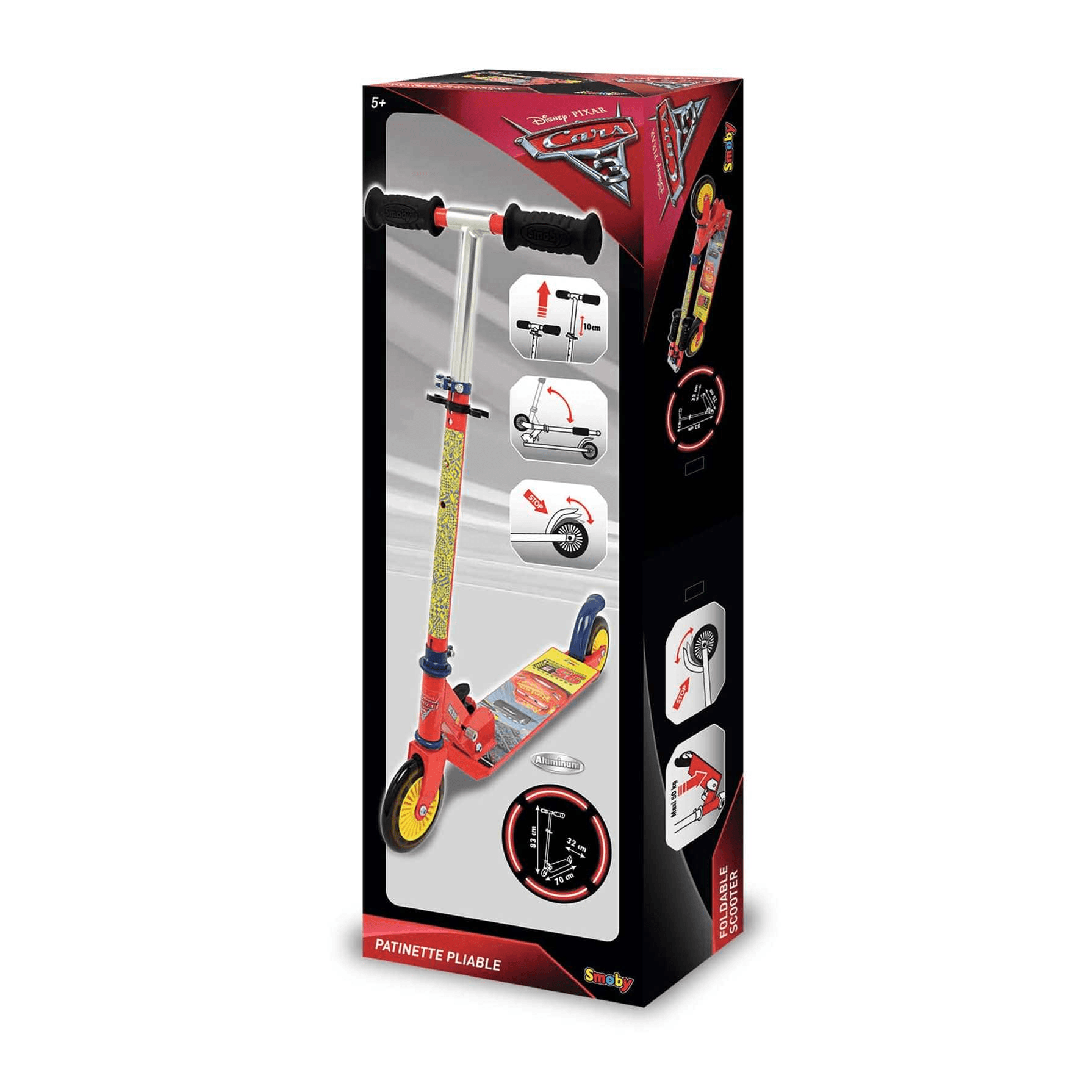 El Patinete 2 ruedas Cars está diseñado para ser conducido por niños y niñas de 6 años (el sistema de ajuste permite adecuarlo al tamaño del conductor). El peso máximo es de 50 kg.
