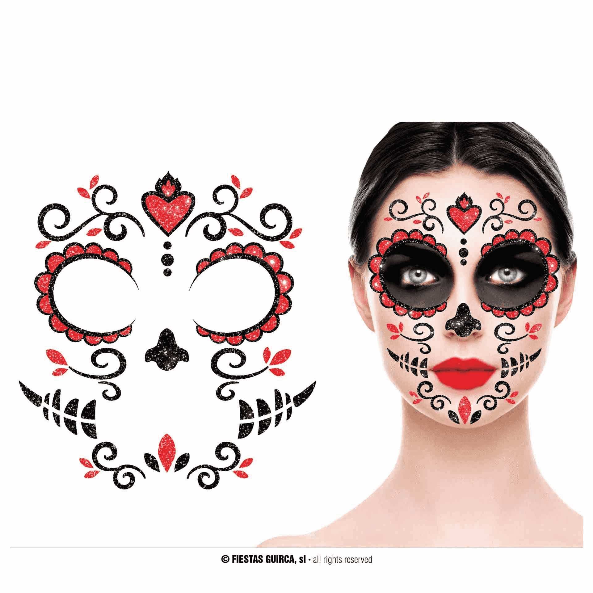 El Tatuaje Catrina Glitter Face es el accesorio perfecto para celebrar el Día de los Muertos con un look llamativo y festivo. Con un diseño inspirado en la catrina mexicana y decorado con detalles de glitter, este tatuaje facial añade un toque de brillo y color a tu disfraz. Sus dimensiones de 20 x 20 cm permiten cubrir gran parte del rostro, logrando un resultado impresionante.