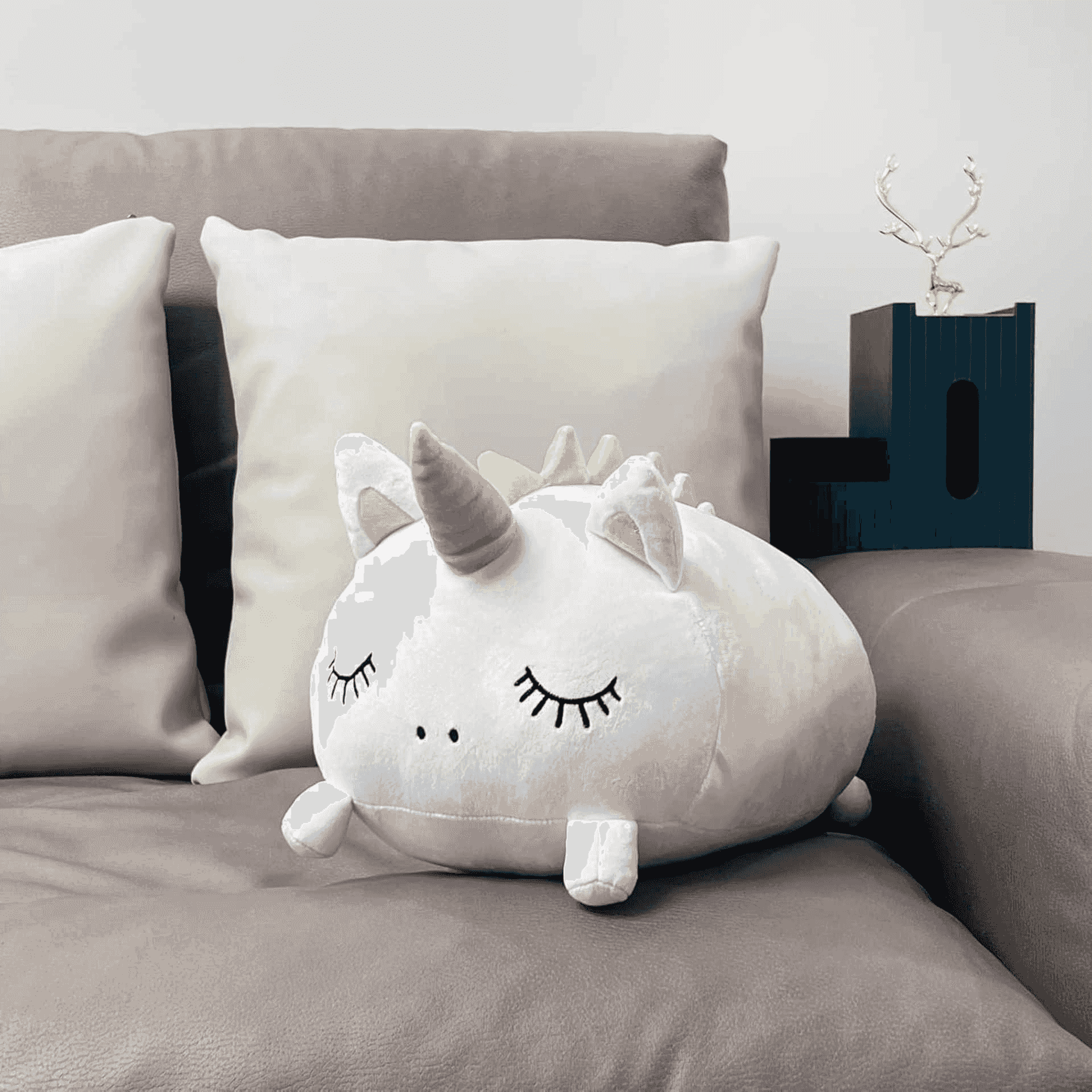 Este unicornio no solo adorna tu habitación, ¡también te acompaña en tus momentos de descanso o juego! Los peques pueden abrazarlo, llevarlo a sus aventuras imaginarias o usarlo para apoyar la espalda mientras leen o miran una peli. Su forma y suavidad hacen que todos quieran uno en casa.