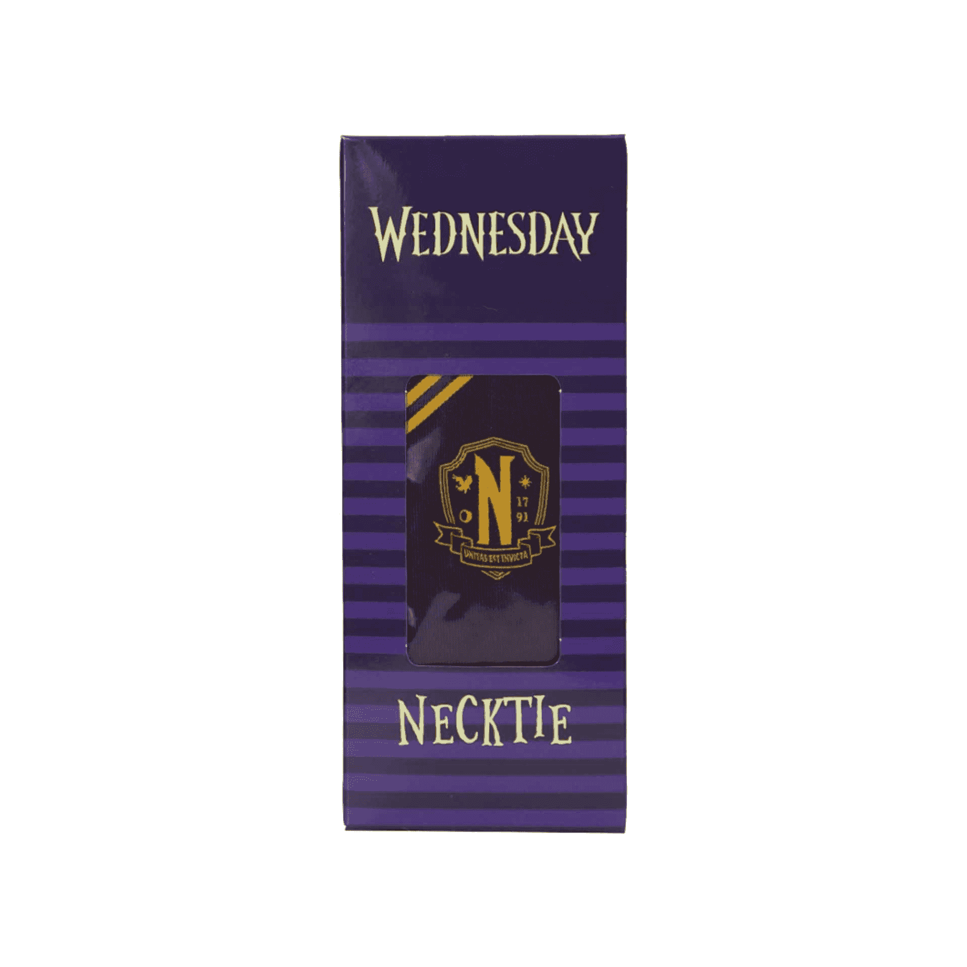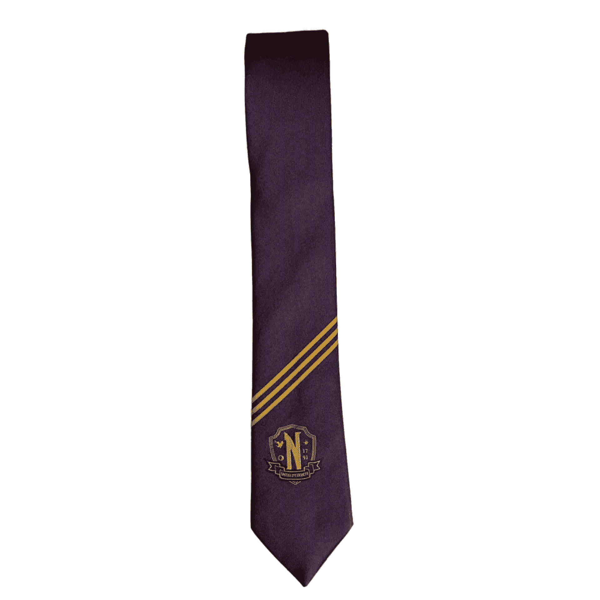 - Diseño exclusivo: Corbata morada con el logo de la Academia Nevermore, ideal para fans de la serie ´Miércoles´.
