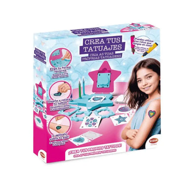 Crea tus Tatuajes es un set creativo que permite a los peques diseñar tatuajes temporales de manera fácil y divertida. Solo tienen que elegir la forma, colocarla en la máquina y dejar volar la imaginación usando plantillas y rotuladores.