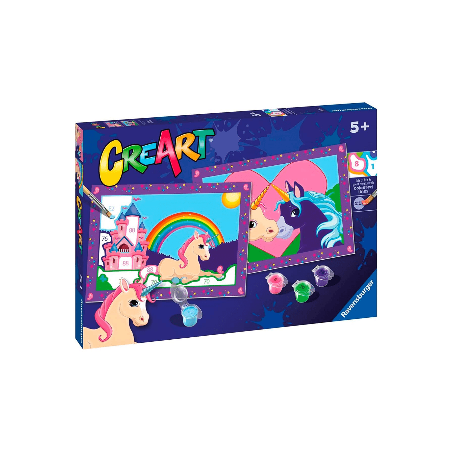 Descubre el kit de pintura por números 'Magical Unicorns' de Ravensburger, ideal para niños de 5 a 8 años. Fomenta la creatividad y mejora la motricidad fina con este divertido set de pintura.