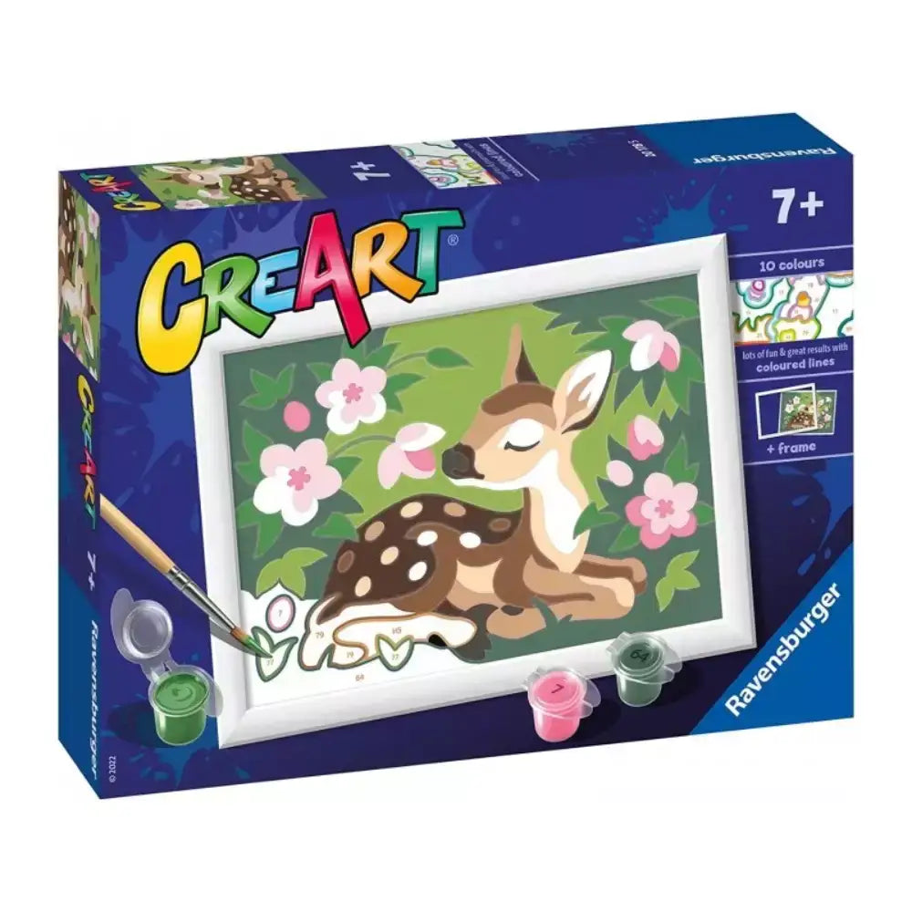 ¿Te gustaría pintar un adorable cervatillo descansando entre flores sin salirte de las líneas? Con el CreArt Serie E: Cervatillo entre las flores de Ravensburger, ¡es posible! Este kit de pintura por números es perfecto para niños y niñas a partir de 7 años que quieren iniciarse en el mundo del arte de forma divertida y sencilla.
