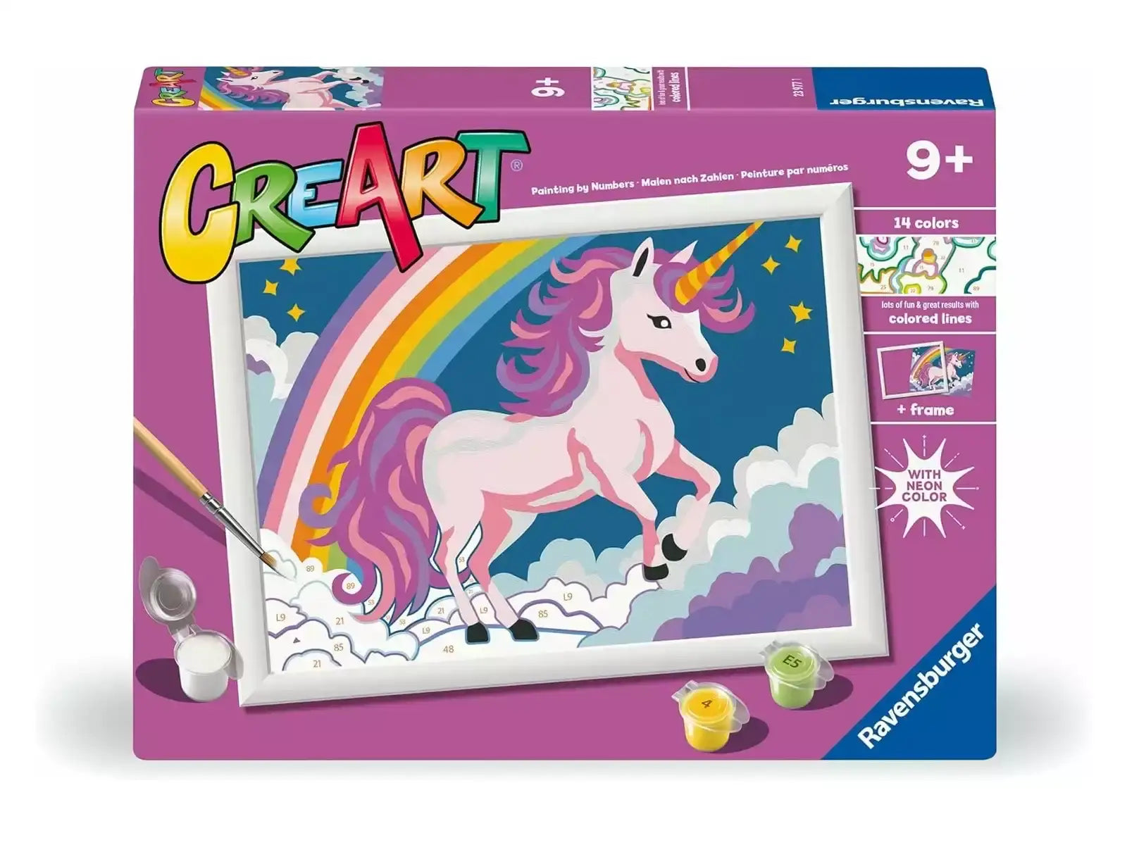 ¿Te imaginas pintar un unicornio rosa neón que brilla con solo seguir los números? Pues con el set CreArt de Ravensburger lo vas a pasar en grande. ¡Prepara tus pinceles y convierte un lienzo blanco en una auténtica obra de arte mágica!
