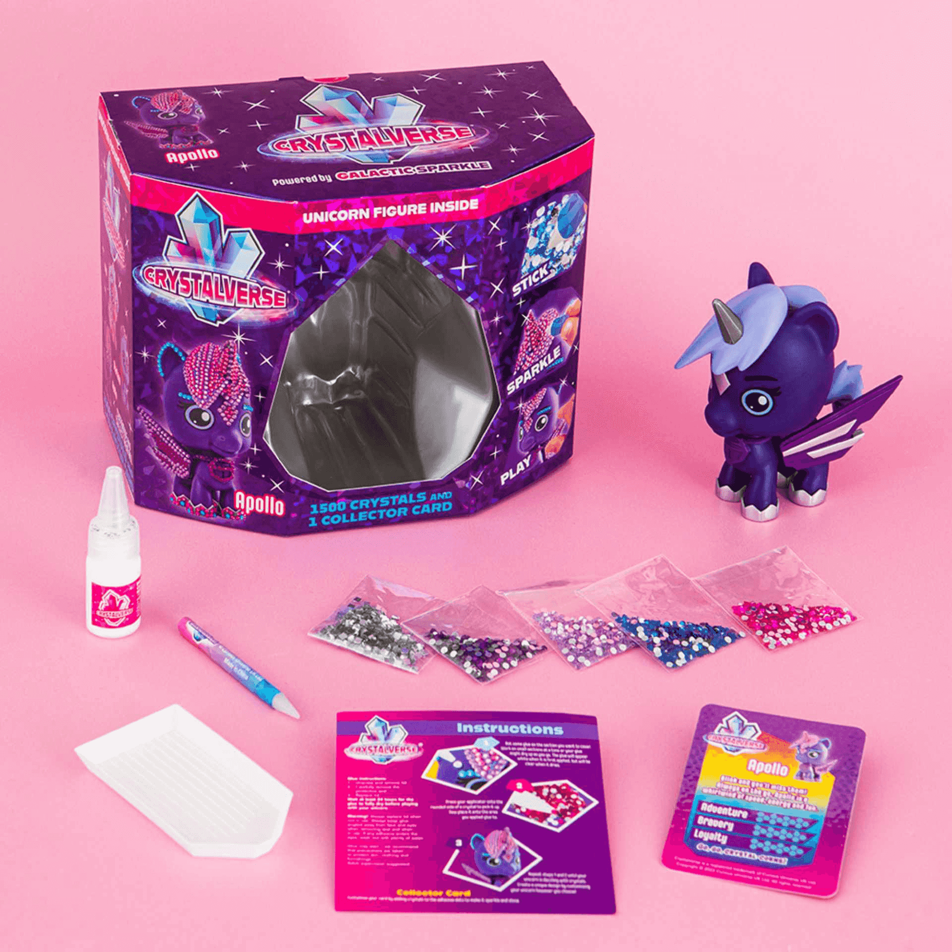 Con el Crystalverse Classic Apollo, los niños pueden sumergirse en una aventura cósmica mientras personalizan su unicornio con brillantes cristales. Este kit no solo ofrece diversión, sino que también promueve el desarrollo de habilidades motoras y la creatividad.