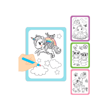 Gracias a su sistema reutilizable, los dibujos vuelven a desaparecer una vez que se secan, lo que permite usarlos una y otra vez. Solo hace falta añadir un poco de agua al pincel especial incluido y dejar que empiece la magia. Las escenas ocultas cobran vida a medida que el agua toca las páginas, revelando colores y formas que sorprenderán a los más pequeños.