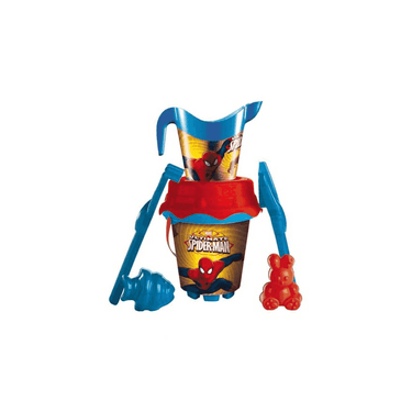 Cubo de playa Spiderman 18 cm con regadera, pala.. rastrillo...