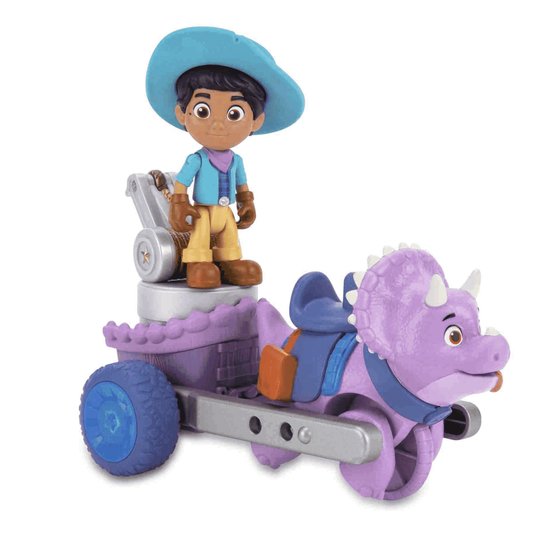 El Dino Action Pack Vehicles (DNA03000) de Dino Ranch te sumerge en emocionantes aventuras protagonizadas por la familia Cassidy mientras enfrentan la vida en un mundo prehistórico lleno de acción y fantásticas criaturas que aún deambulan: los dinosaurios. Los jóvenes rancheros descubren técnicas únicas y experimentan la emoción de la vida en el rancho. ¡Con el Dino Action Pack, podrás interactuar con los mismos dinosaurios que aparecen en la serie de televisión!