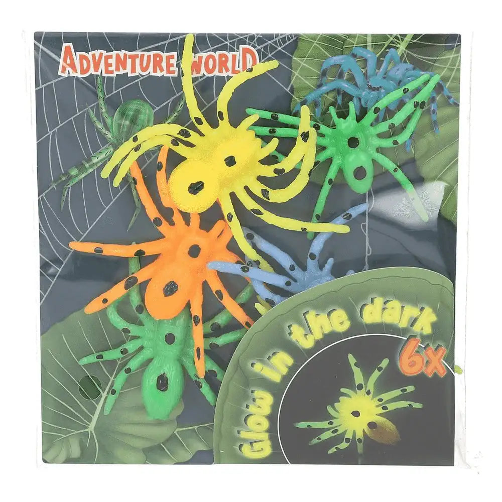 Descripción del producto: ¡Atención, arañas! Estas chulísimas arañas de plástico son muy guay y, además, se ilumien la oscuridad. El set se compone de 6 arañas: amarillo, naranja, azul y verde (al menos una araña de cada color). De Adventure World.