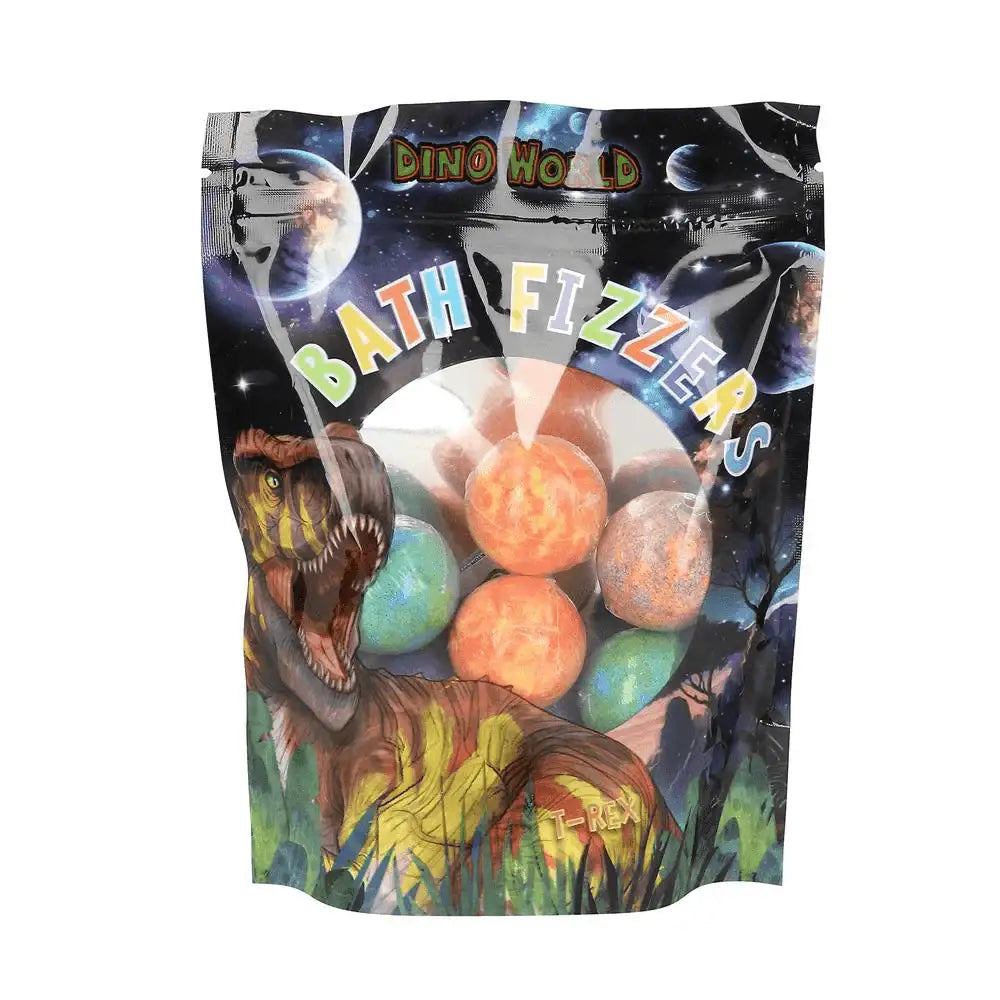 Descripción del producto: ¡Diversión en el baño para los fans de los dinosaurios! Estas bombas de baño de Dino World son efervescentes y al disolverse tienen un maravilloso aroma frutal. Cada bolsa incluye siete bombas de baño con diseños de planetas.