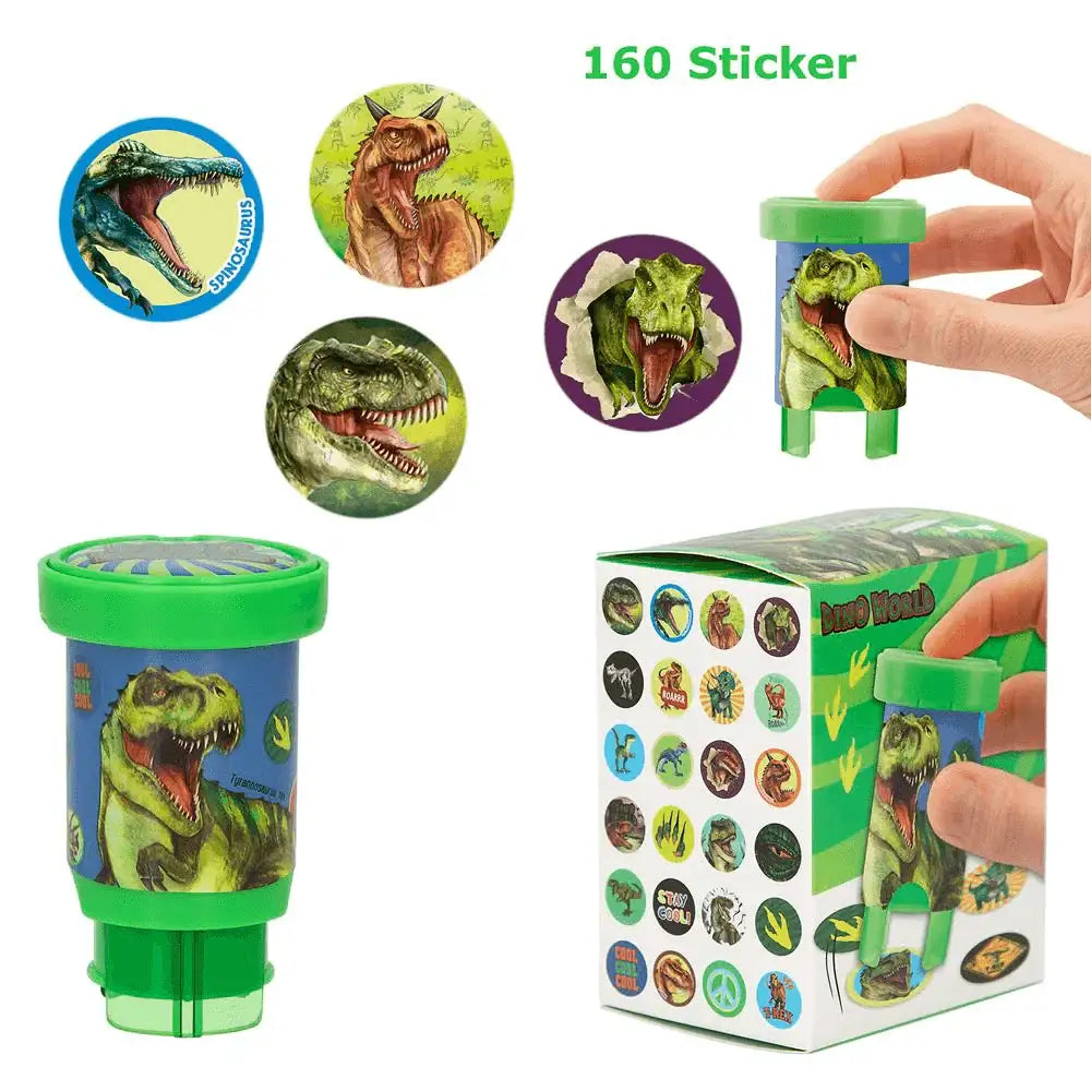 Descripción del producto: ¿Estampar? ¿Poner pegatinas? ¡Ambas cosas! La estampadora de pegatinas de Dino World estampa una de las 160 pegatinas redondas disponibles en el juego (4 x 40 motivos) con solo apretar un botón. Los diferentes motivos pueden verse en la caja.