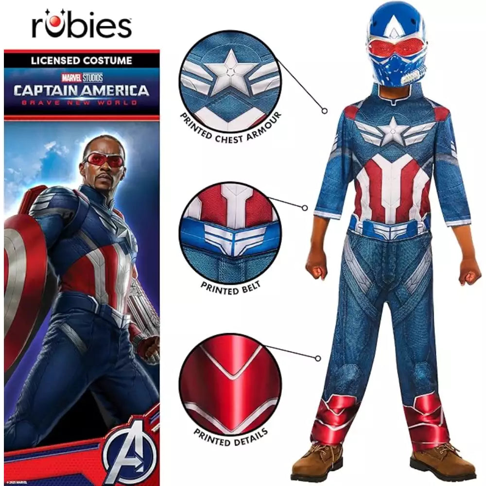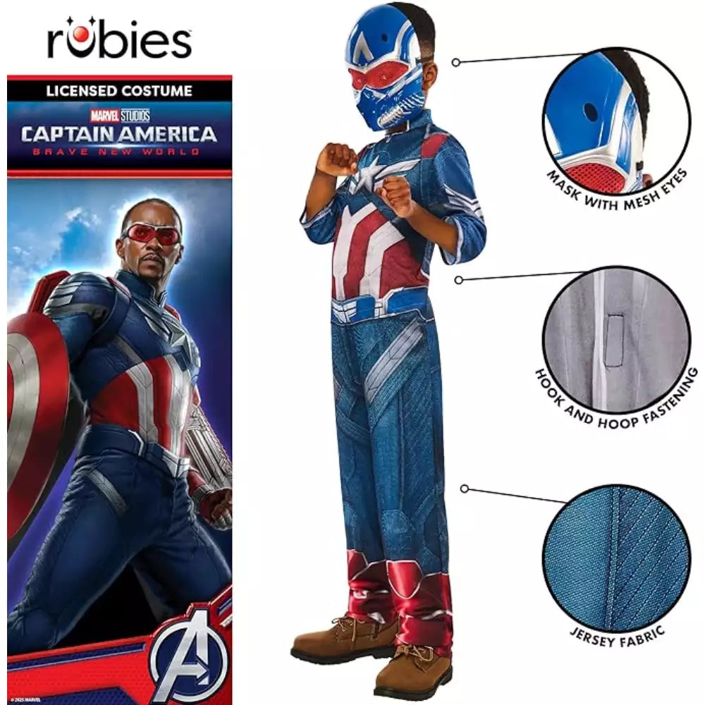 Talla 5 años, cierre de velcro, tejido cómodo, diseño inspirado en Sam Wilson. -