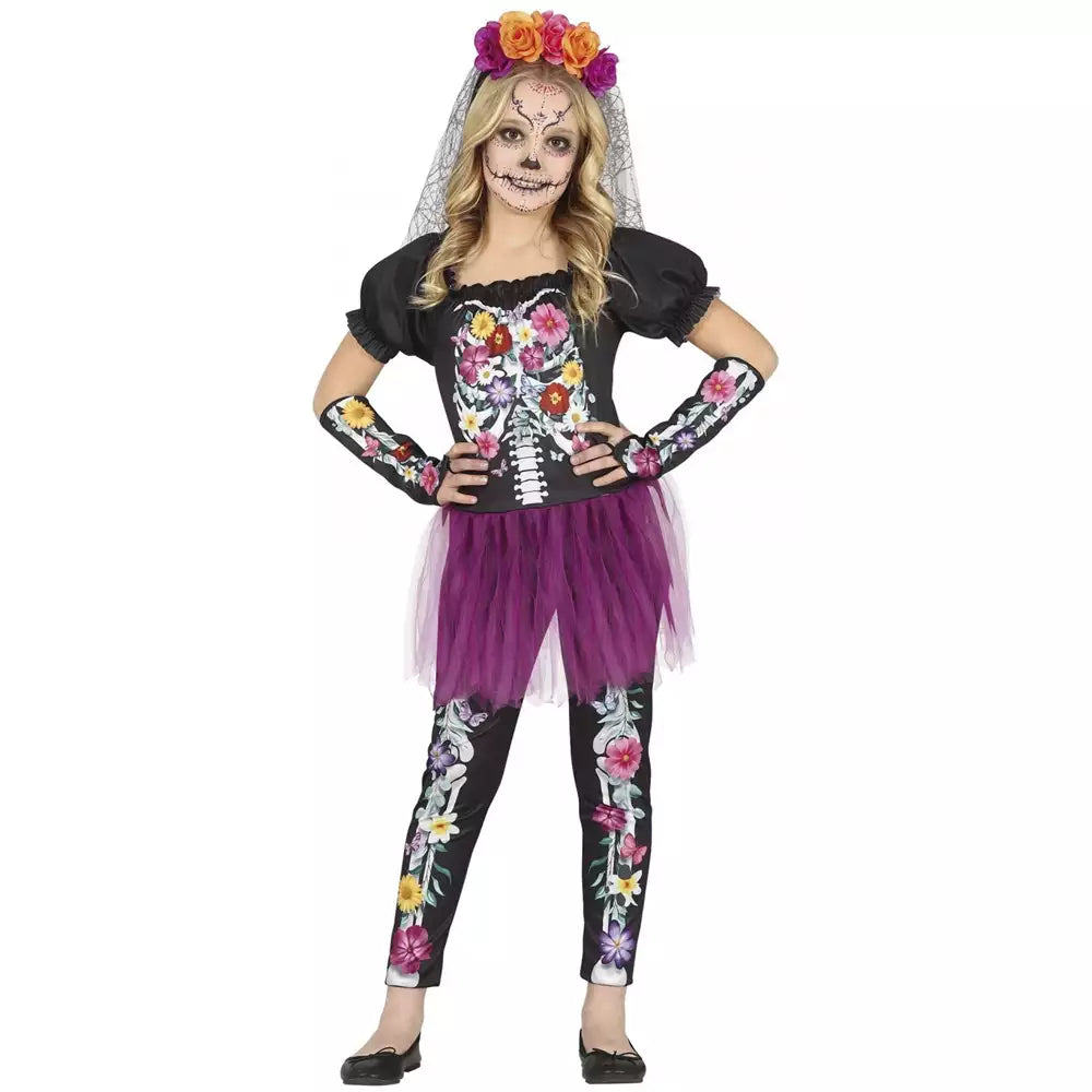 Disfraz Catrina Infantil con Flores y Tutú T. 5-6