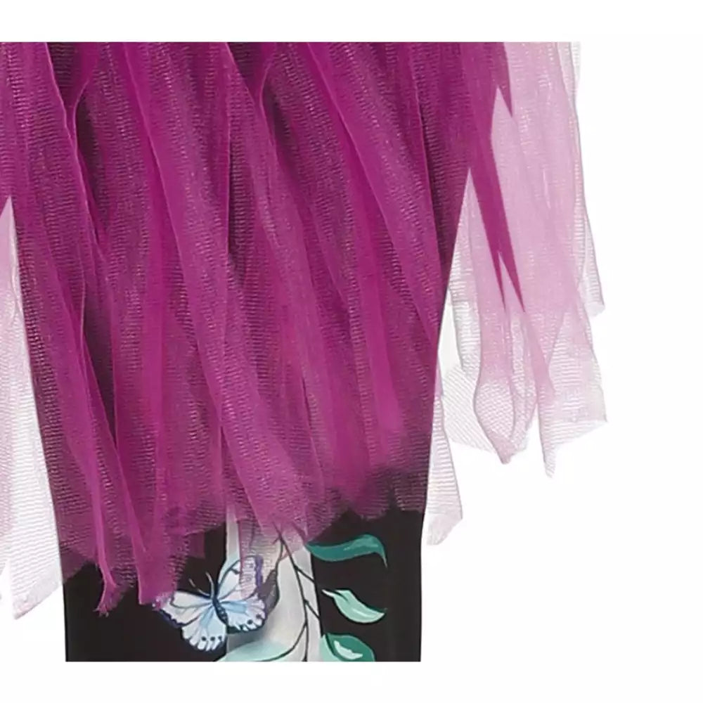 - Tutú morado de tul que añade volumen y un toque elegante.