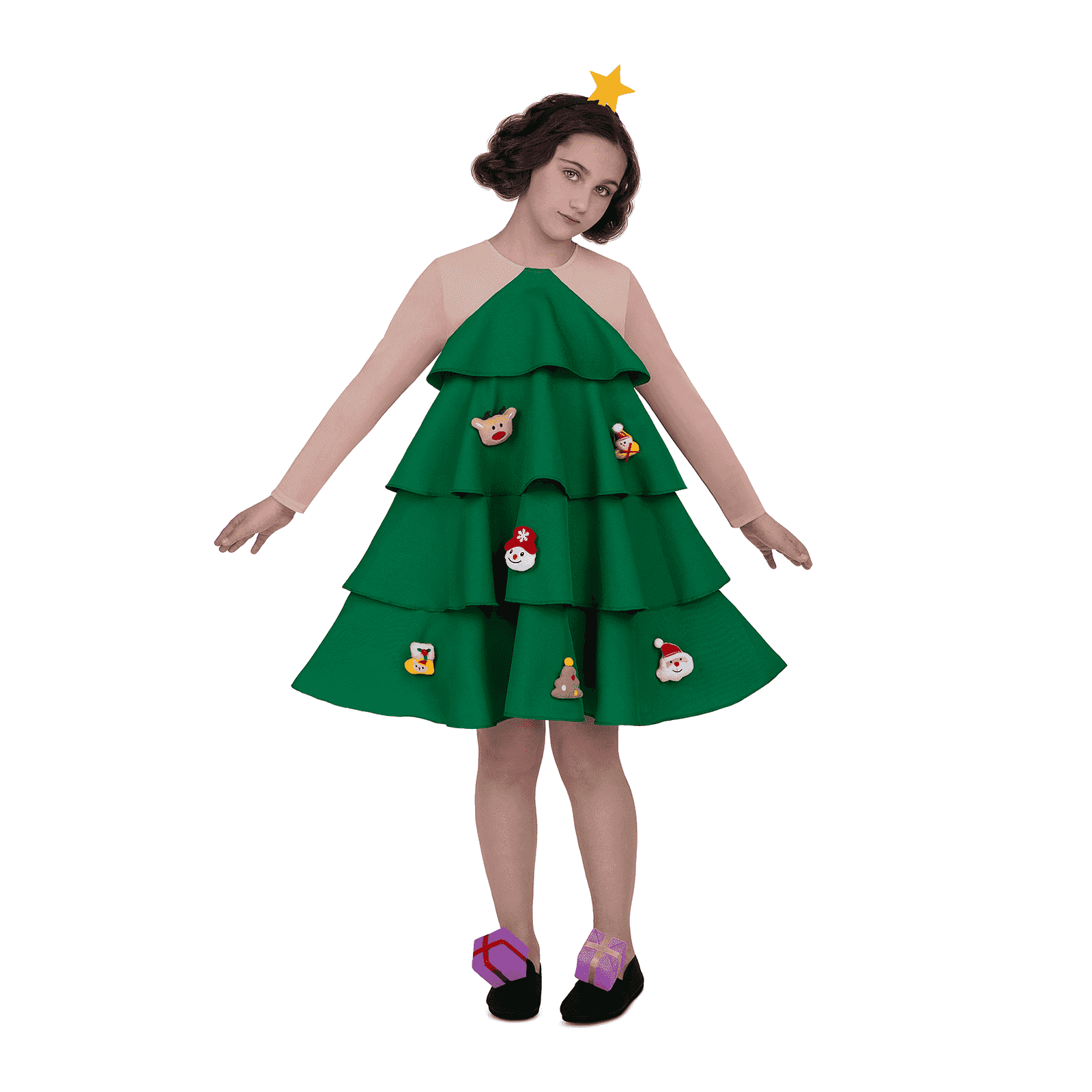 ¿Qué incluye? incluye diadema con estrella, vestido con figuritas y accesorios para zapatos.