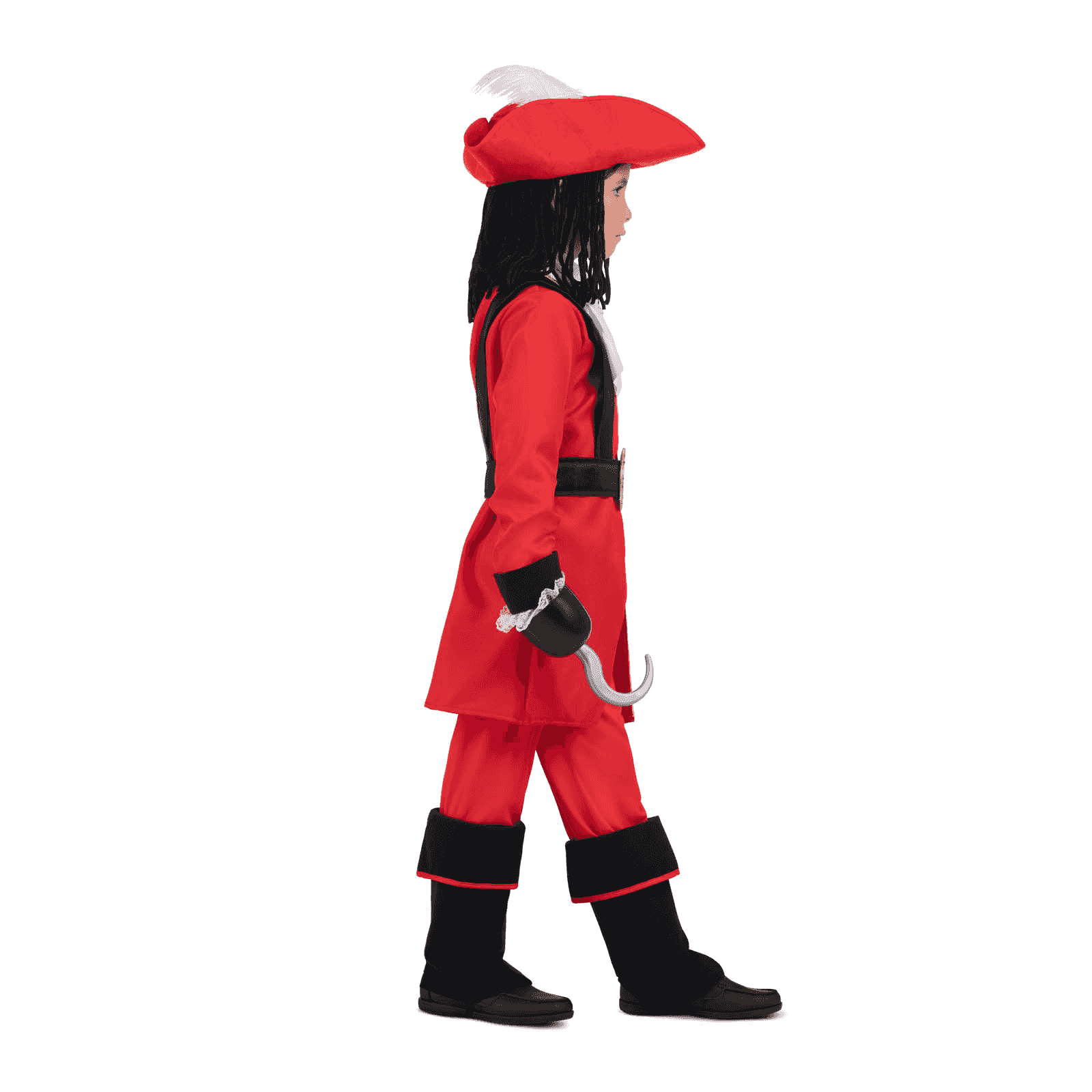 ¿Qué incluye? incluye sombrero con peluca textil, chaqueta, cuello, garfio, pantalón, cinturón y polainas.
