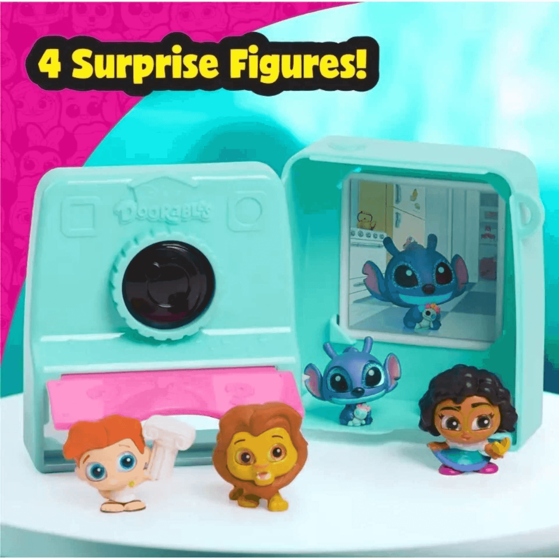 - Sorpresa en cada cápsula: Cada cápsula en forma de cámara contiene 2 figuras misteriosas, representando personajes clásicos de Disney en diferentes tamaños.