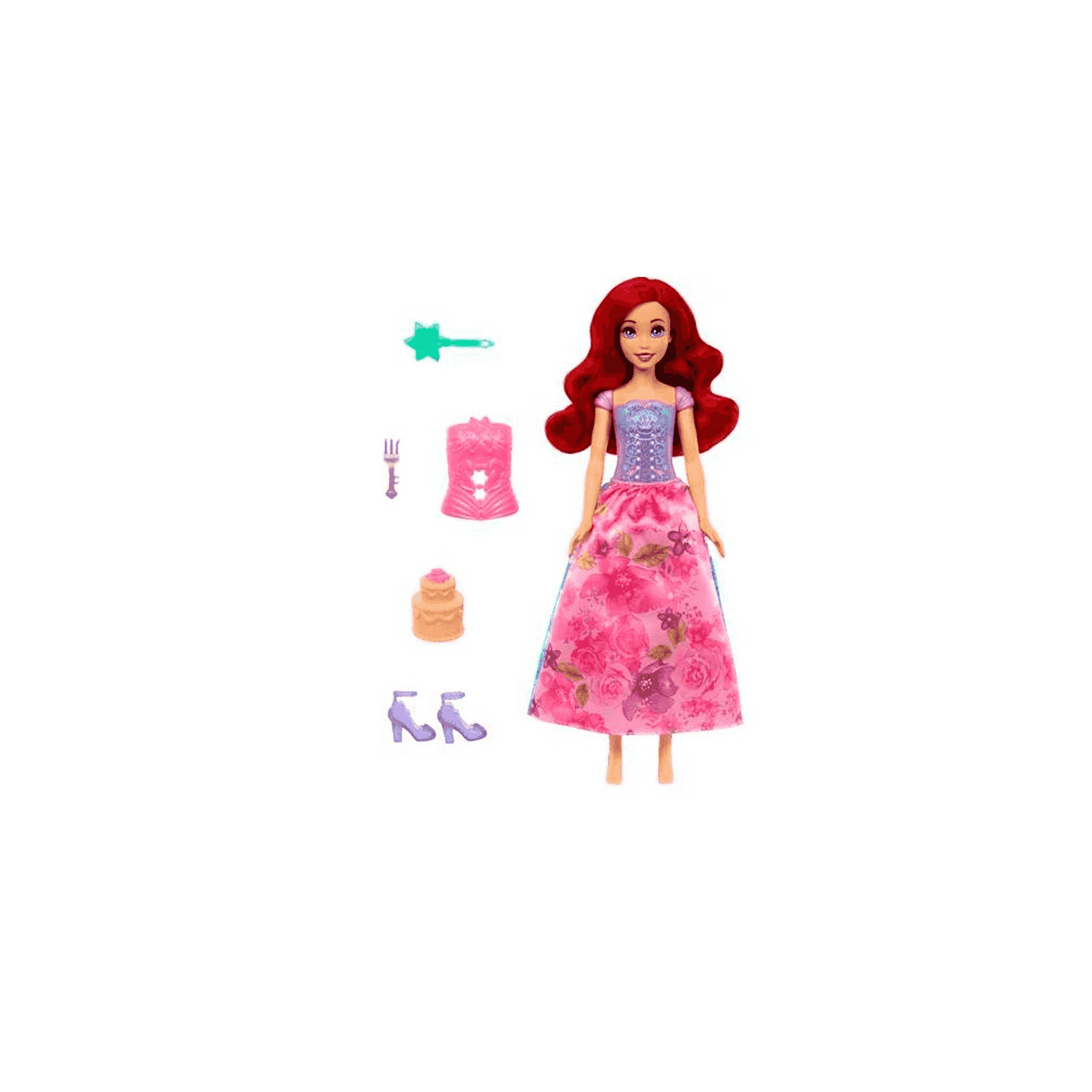 - Diseño inspirado en Ariel: La muñeca viene vestida con un conjunto floral único, capturando la esencia del personaje.