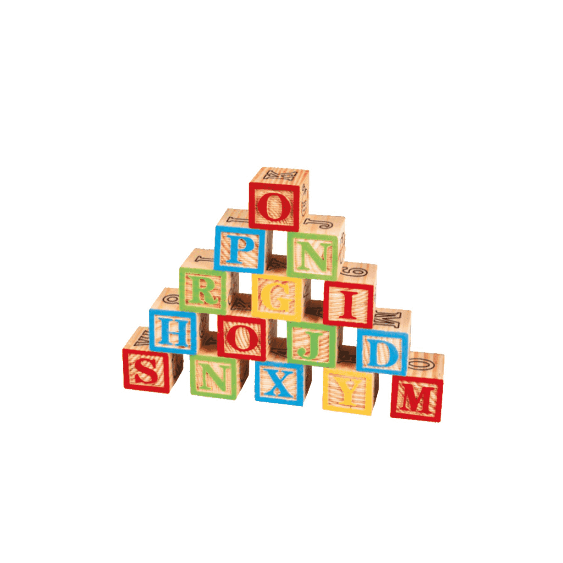 El material predominante de cada pieza es una madera liviana y lisa. Algunas de estas piezas de madera vienen con estampados de números y letras en distintos colores para que los niños y niñas comiencen a aprender los números, colores y se familiaricen con las distintas letras del vocabulario español.