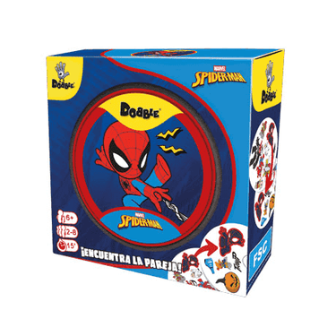 Dobble Spider-Man es un juego de cartas rápido y muy divertido de la marca Asmodee, protagonizado por el superhéroe favorito de muchos niños y niñas. Pensado para jugadores y jugadoras a partir de 6 años, este juego pone a prueba la velocidad visual, los reflejos y la capacidad de concentración a través de partidas cortas, dinámicas y llenas de emoción, ideales para jugar en familia o con amigos.