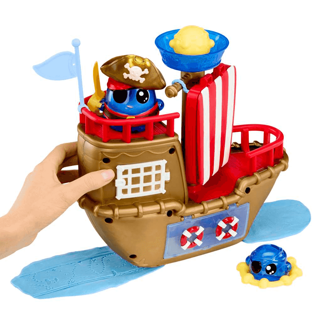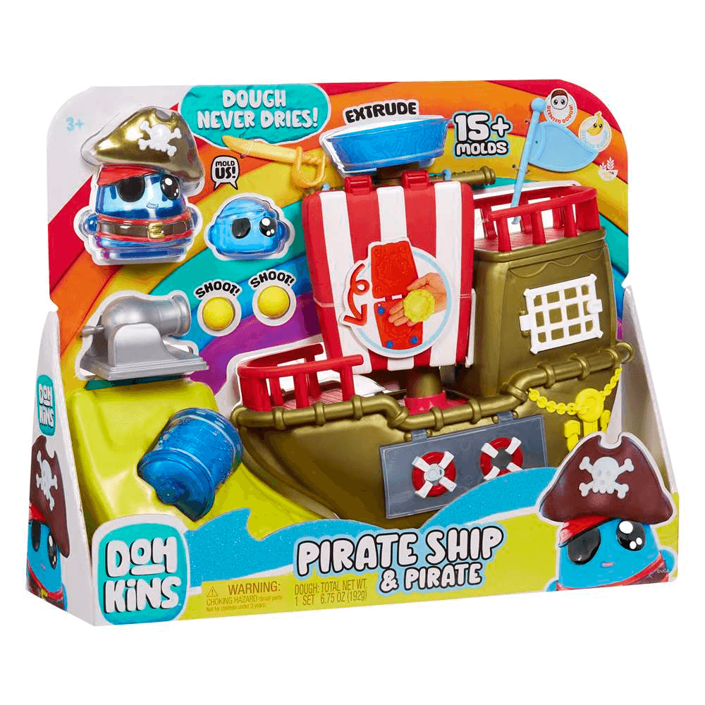 ¡Prepárate para zarpar hacia la creatividad con el Dohkins Barco Pirata! Un divertido playset inspirado en la serie de animación Dohkins que combina aventuras piratas y plastilina creativa para que los peques puedan imaginar historias llenas de acción.