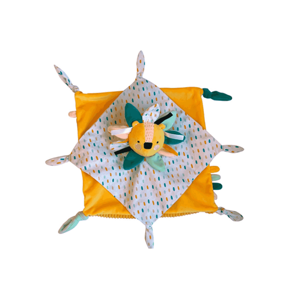 Este adorable dudú en forma de león combina tejidos suaves, colores cálidos y detalles bordados que aportan tranquilidad y estimulación al mismo tiempo. Diseñado con el máximo cuidado, está pensado para el uso diario del bebé, tanto en casa como en paseos o viajes.