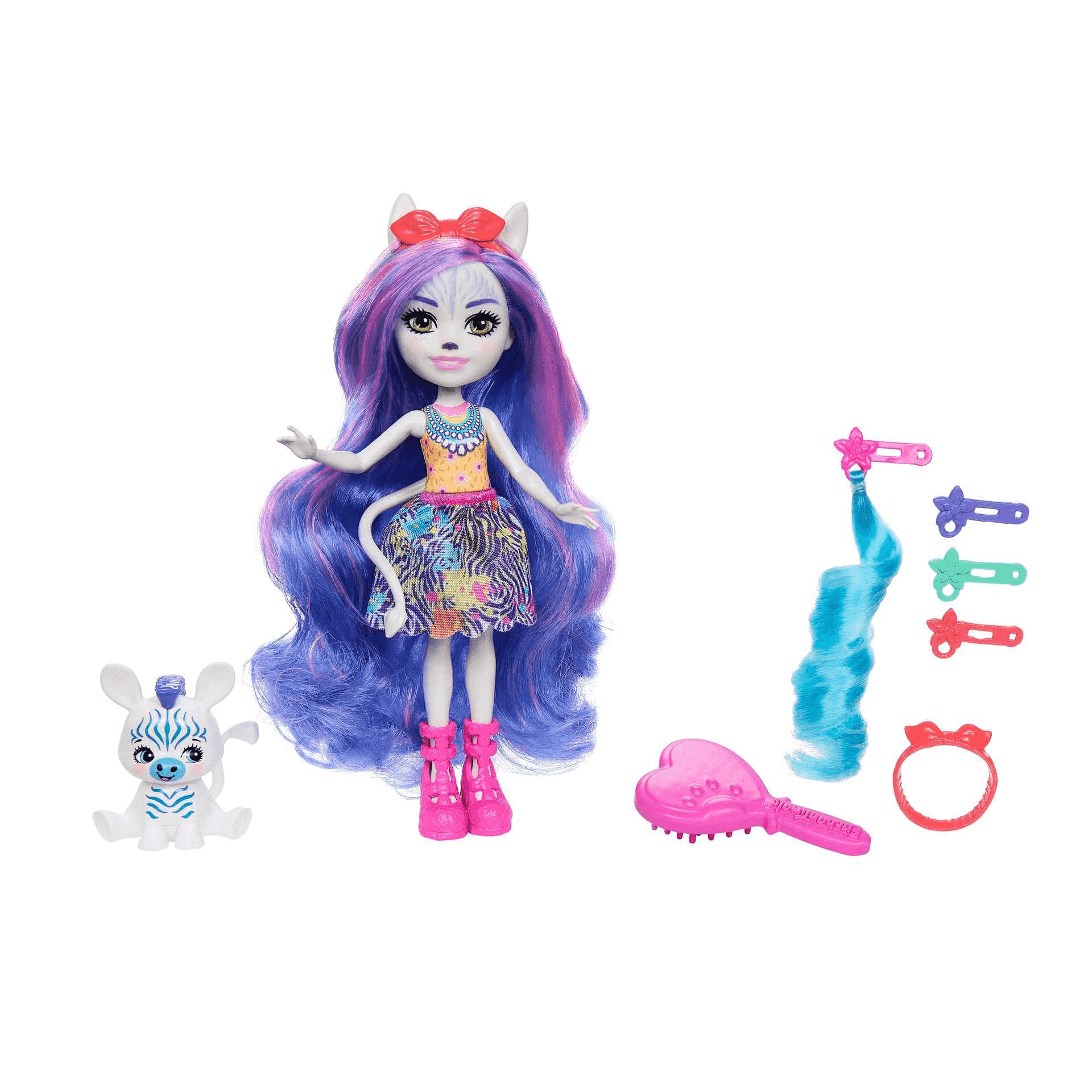 Enchantimals Glam Party Zemirah Zebra y Grainy Muñeca con mascota cebra y accesorios para peinar