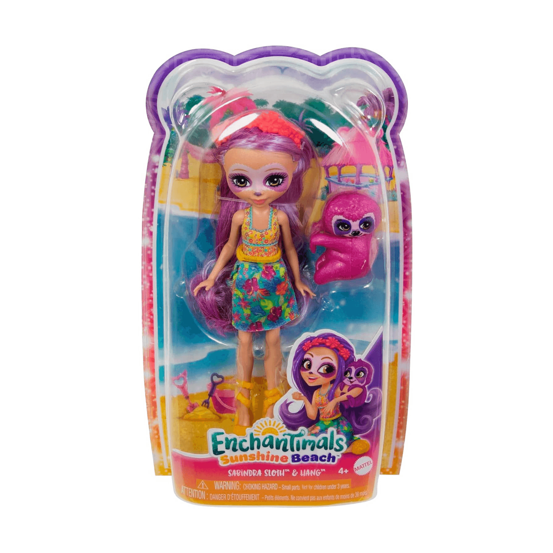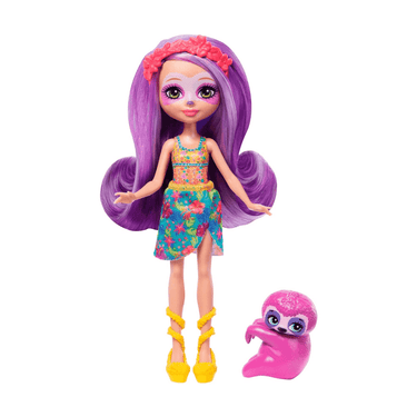 - Personajes incluidos: Muñeca Enchantimals con atuendo tropical y perezoso