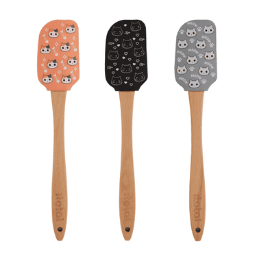 Espátula Silicona Gato con Mango de Madera Surtidas