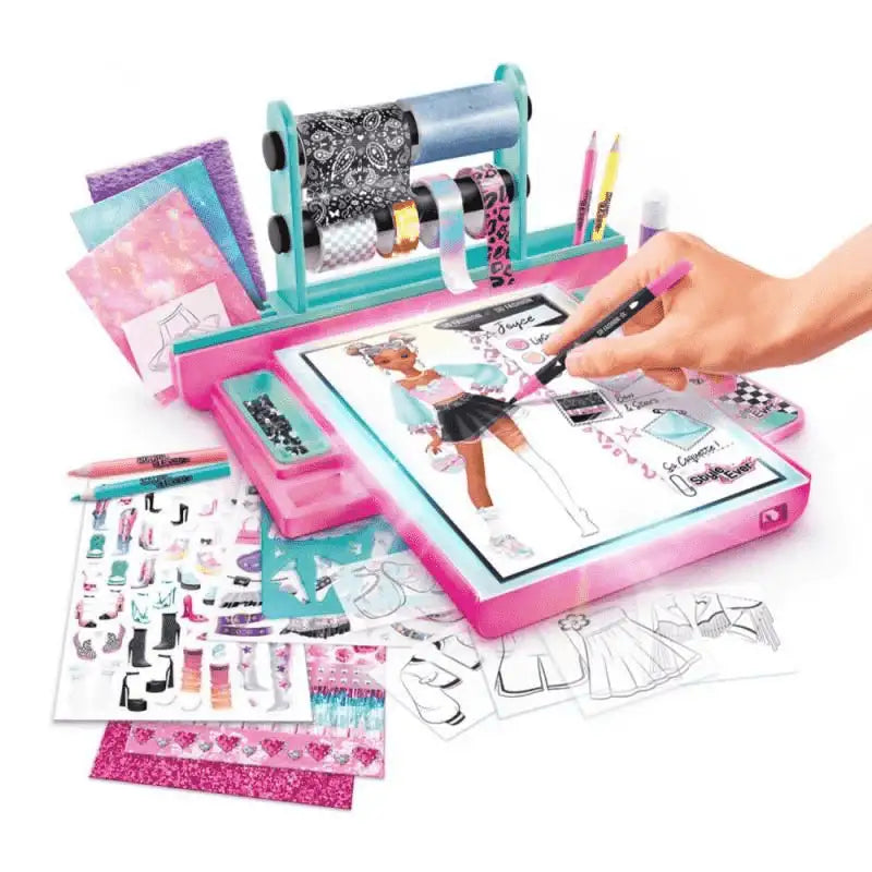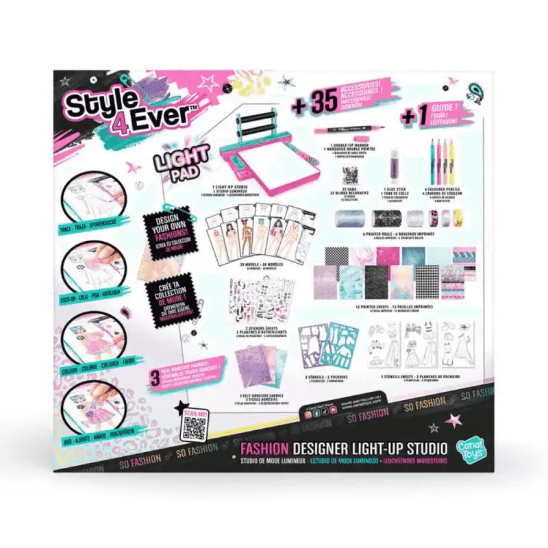 ¿Listas para que el talento creativo salga a la luz? El Estudio de Moda Luminoso – Style 4 Ever es un auténtico universo portátil para diseñar tu propia colección de moda con un toque brillante. Ya no necesitas un taller; solo encendiendo la luz incorporada, podrás diseñar prendas como una auténtica diseñadora profesional.