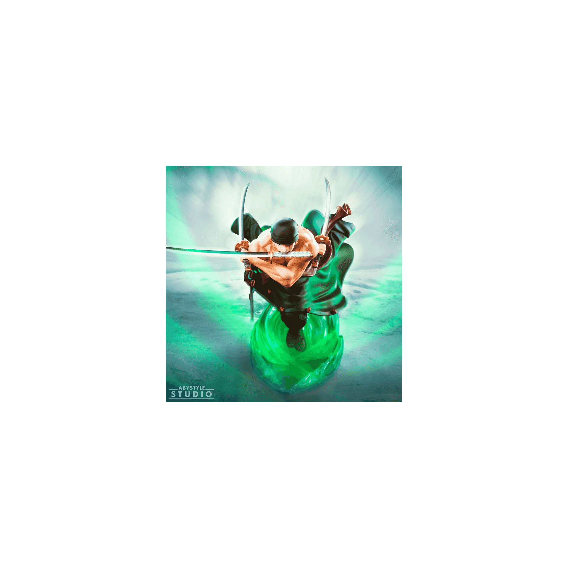 - Diseño Dinámico: Zoro está representado en su clásica postura de batalla, listo para desatar su técnica de tres espadas.