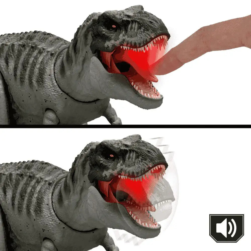 Incluye: 1 figura articulada de tiranosaurio rex Power Devour con rugido y acción de mordida.
