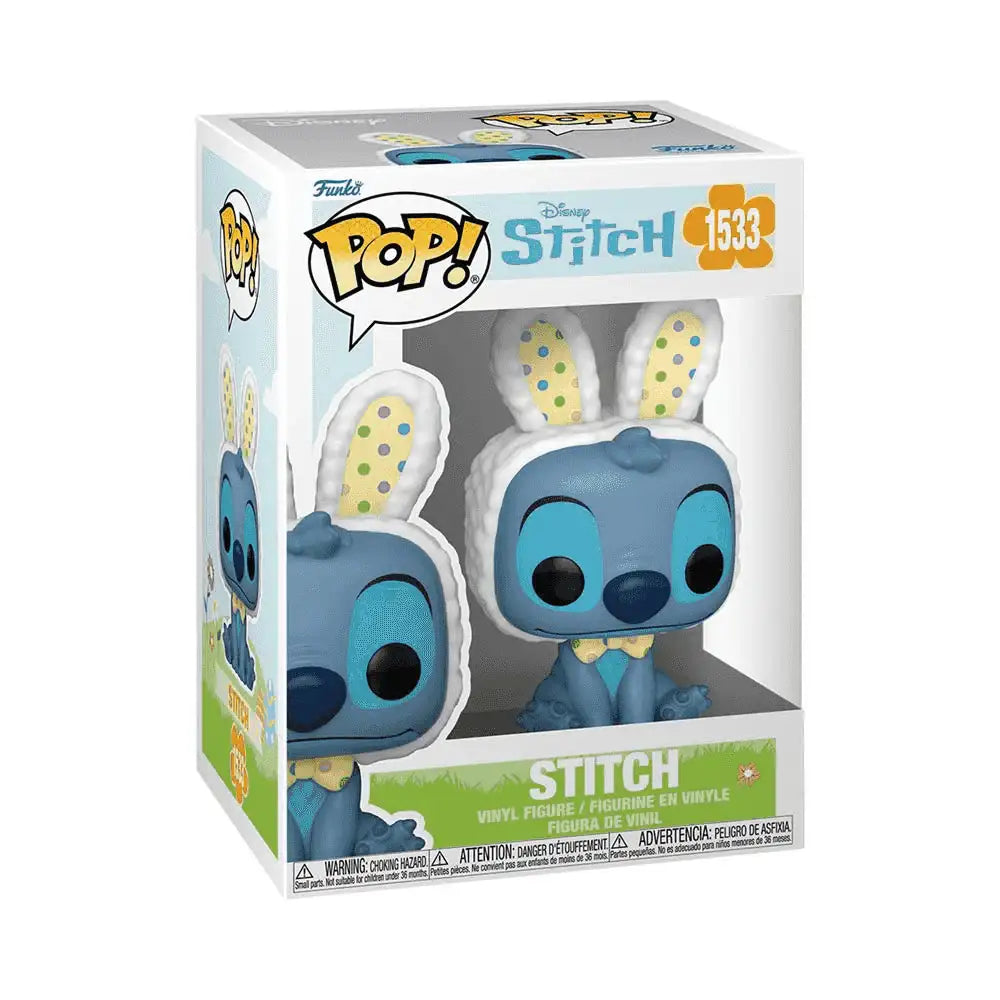¡Celebra la primavera con Pop! Stitch! Este adorable experimento alienígena se ha vestido con un disfraz de conejito blanco y pastel, y está deseando formar parte de tu colección Disney. Figura de vinilo de aproximadamente 10 cm.