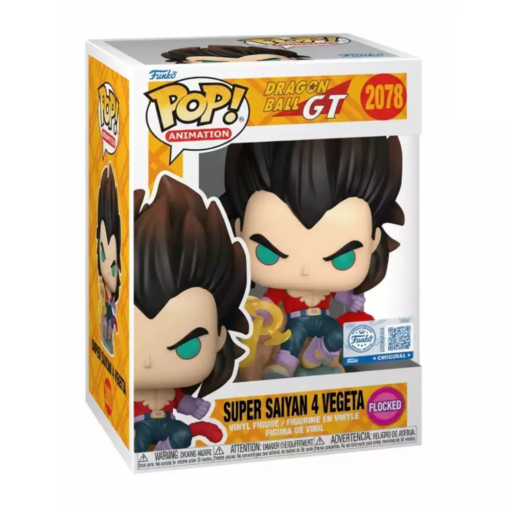 Figura Funko Pop Vegeta SSJ4 Flocked #2078 con textura aterciopelada. Edición especial Dragon Ball GT. ¡Un imprescindible para coleccionistas!