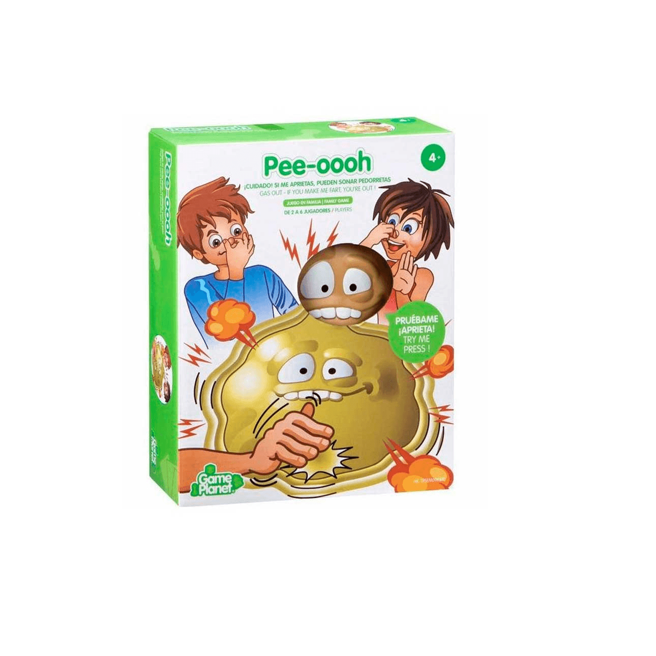Divertido juego de mesa de la marca Game Planet con el que reirás sin parar. ¡Cuidado! Si me aprietas, pueden sonar pedorretas. ¡Apriétame el número de veces que indique tu carta! Juega tu carta pero, ¡cuidado con el gas! Si me haces soltar pedorretas, ¡has perdido! El último que quede, ¡gana!