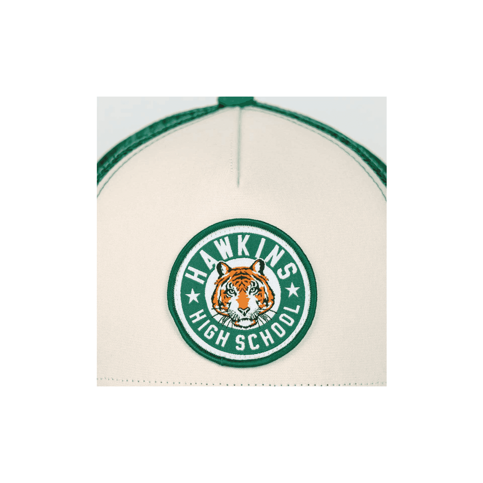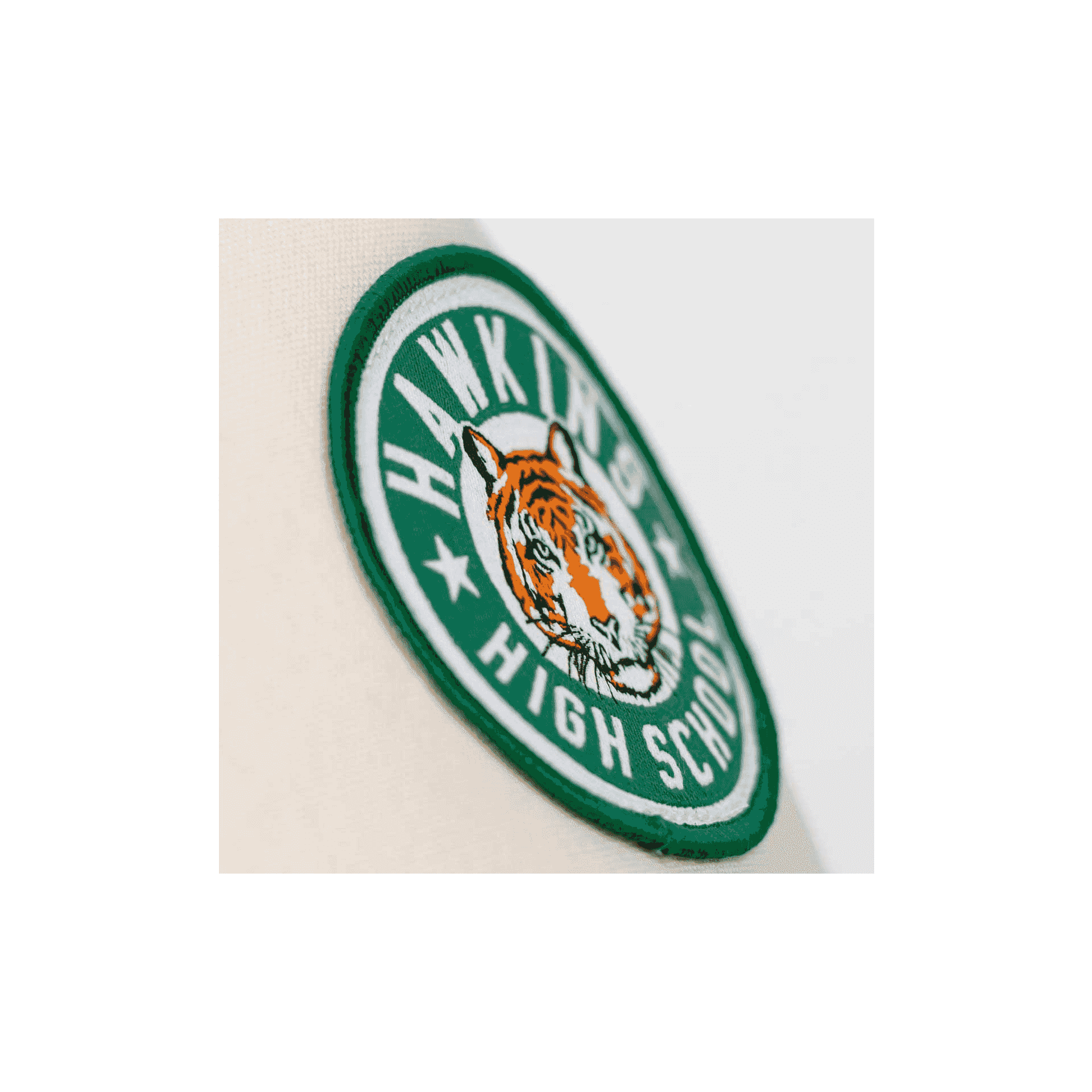 Esta gorra de estilo baseball presenta el logotipo de Hawkins Highschool bordado en la parte frontal, con detalles precisos que capturan la esencia de la serie. Su diseño clásico y ajustable la hace adecuada para todos los tamaños de cabeza, proporcionando comodidad y estilo a partes iguales. La gorra es de color blanco, con la visera en tono verde, que añade un toque distintivo y llamativo.