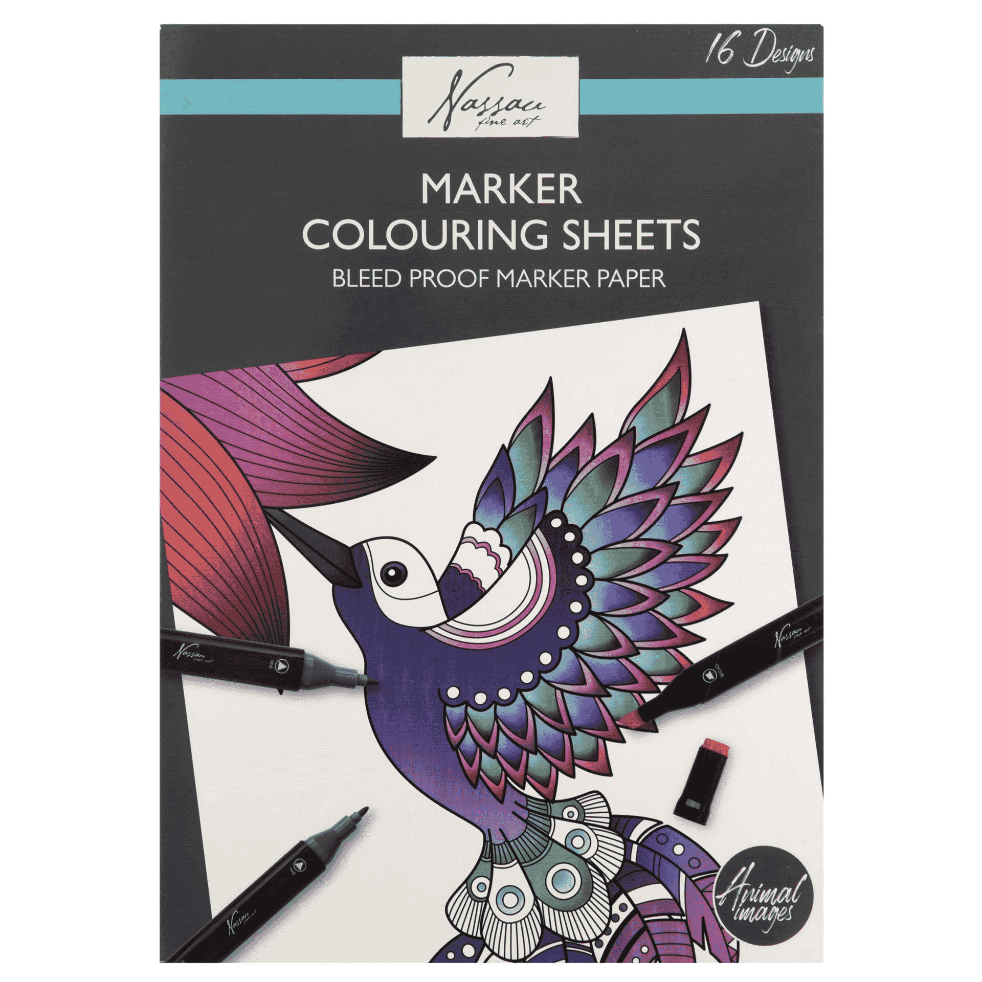 Hojas para colorear con rotuladores Nassau Fine Art Animales – 16 diseños A3