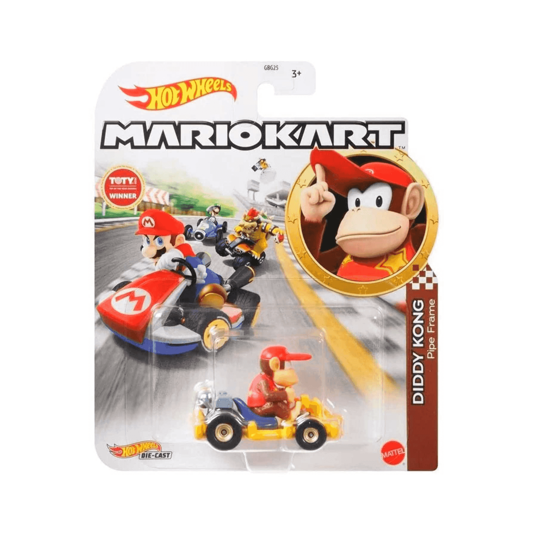 Hot Wheels Mario Kart Coche Diddy Kong Pipe Frame