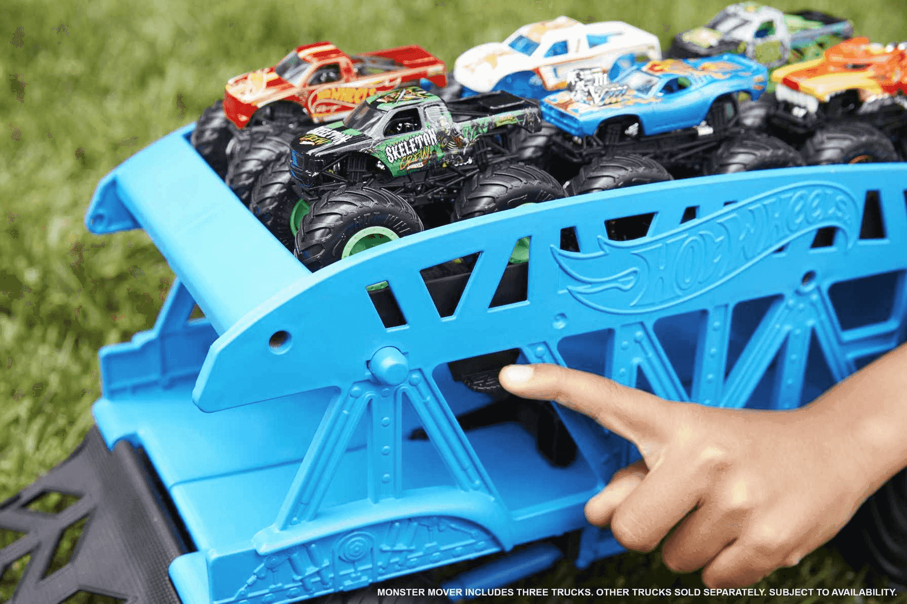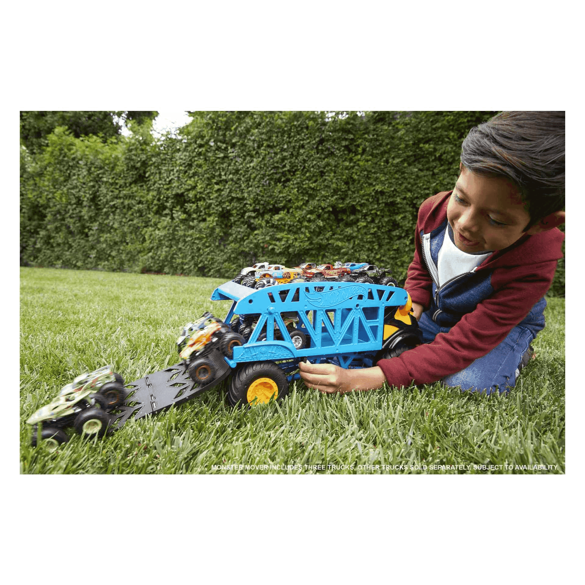 Paquete de Monster Trucks de Hot Wheels con Monster Mover con diseño de Steer Clear y tres camiones, un gran regalo para niños a partir de 3 años