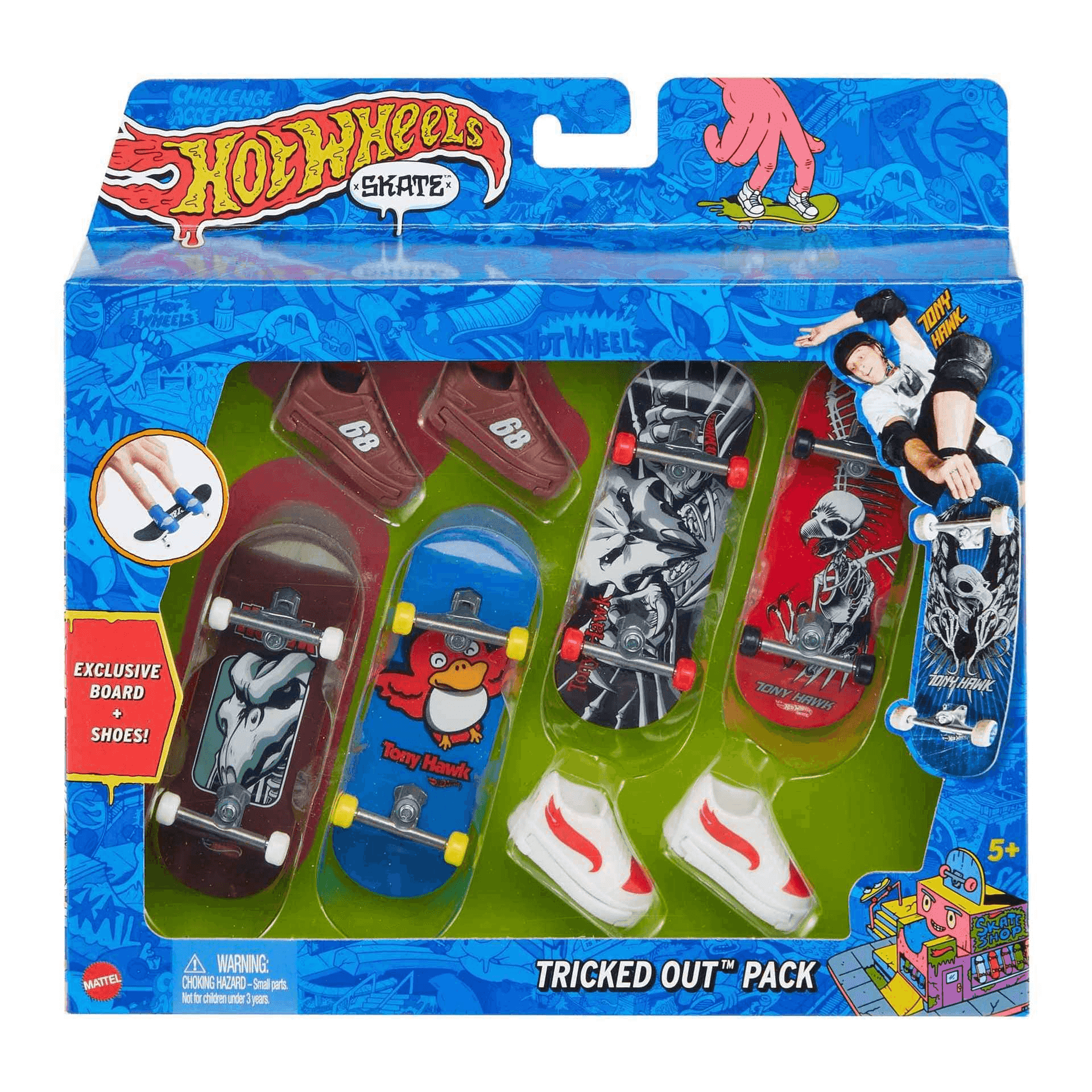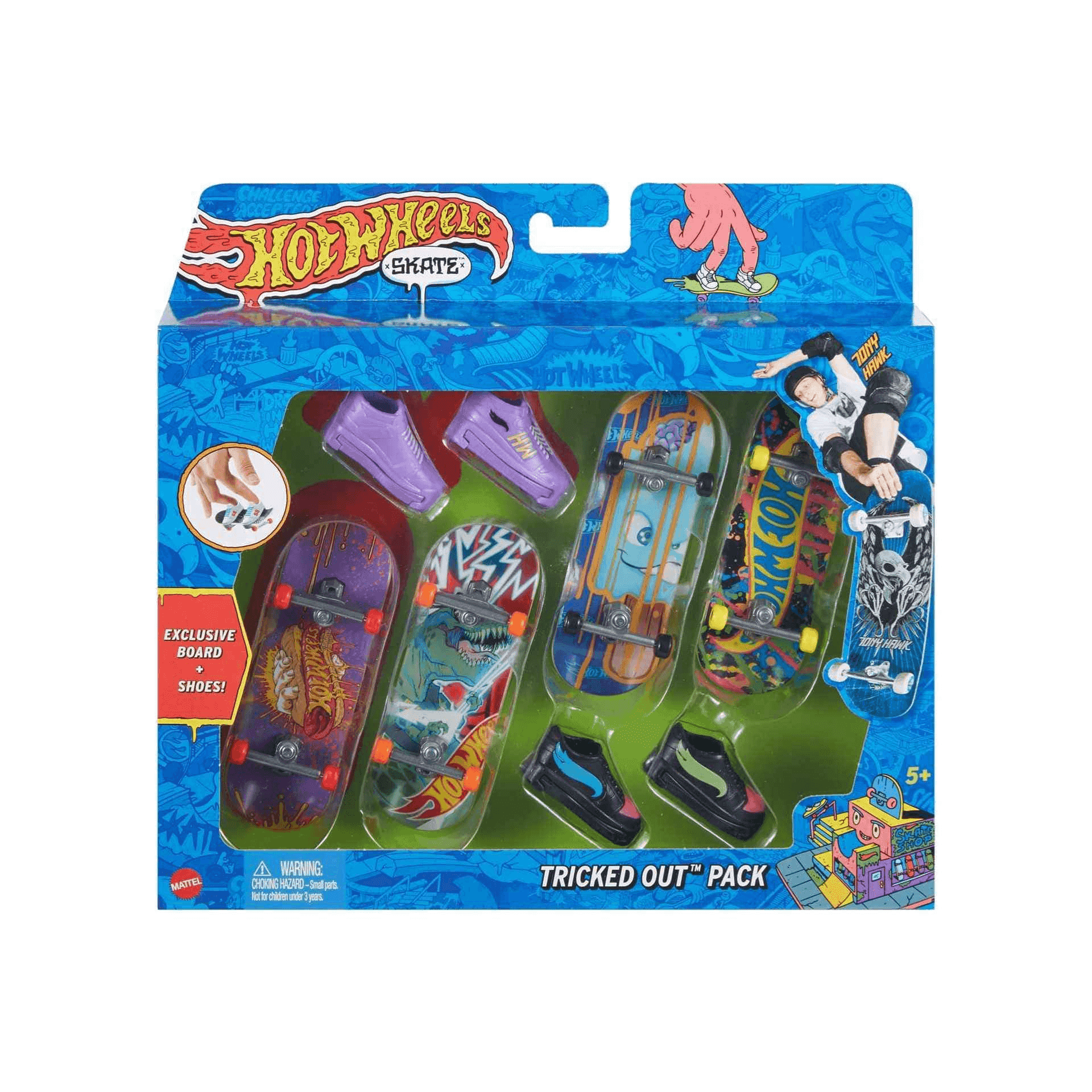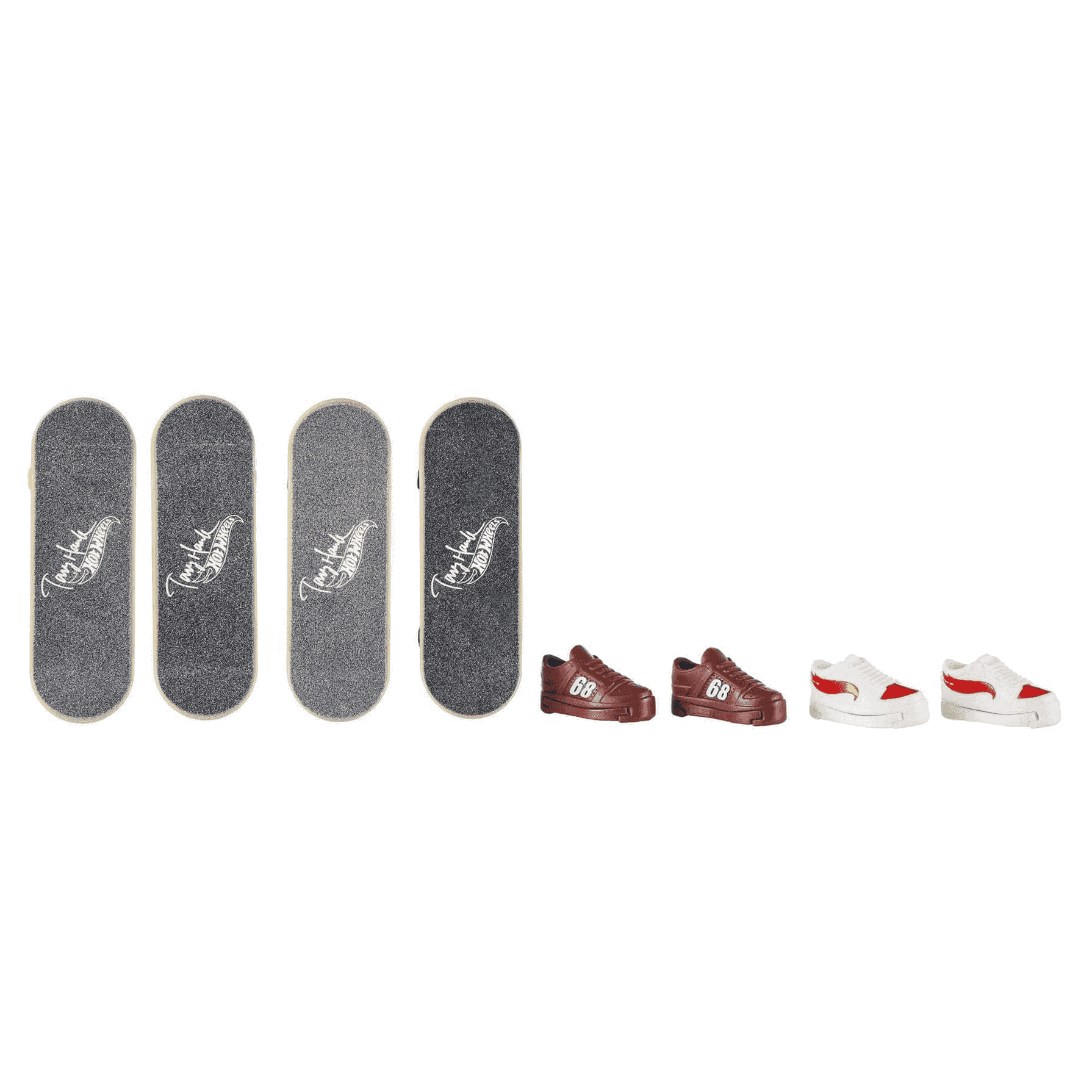 Incluye 4 fingerboards de Hot Wheels Skate y 2 pares de zapatillas de skate. Hay un montón de modelos diferentes para coleccionar, se sirven de forma aleatoria.